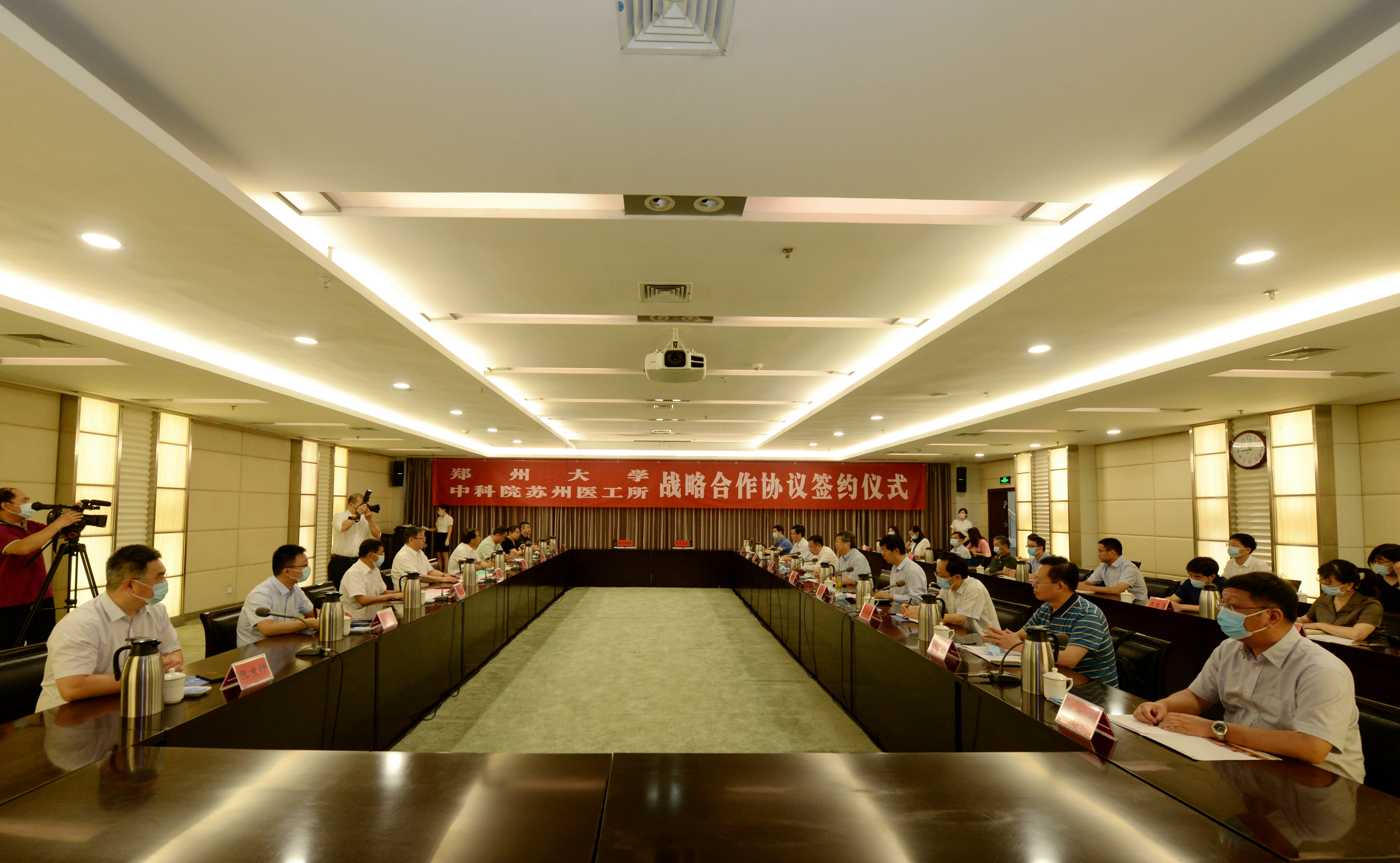 7月14日上午,必赢76net线路官网与中国科学院生物医学工程技术研究所战略合作协议签约仪式在主校区举行。河南省政协副主席、必赢76net线路官网校长刘炯天,苏州医工所所长唐玉国、党委书记杨洪波,郑州市副市长史占勇,校党委常委、副校长关绍康,副校长赵明皞以及苏州医工所、郑州市和必赢76net线路官网有关单位负责同志参加仪式。郑州市高新区党工委书记王新亭主持仪式。
