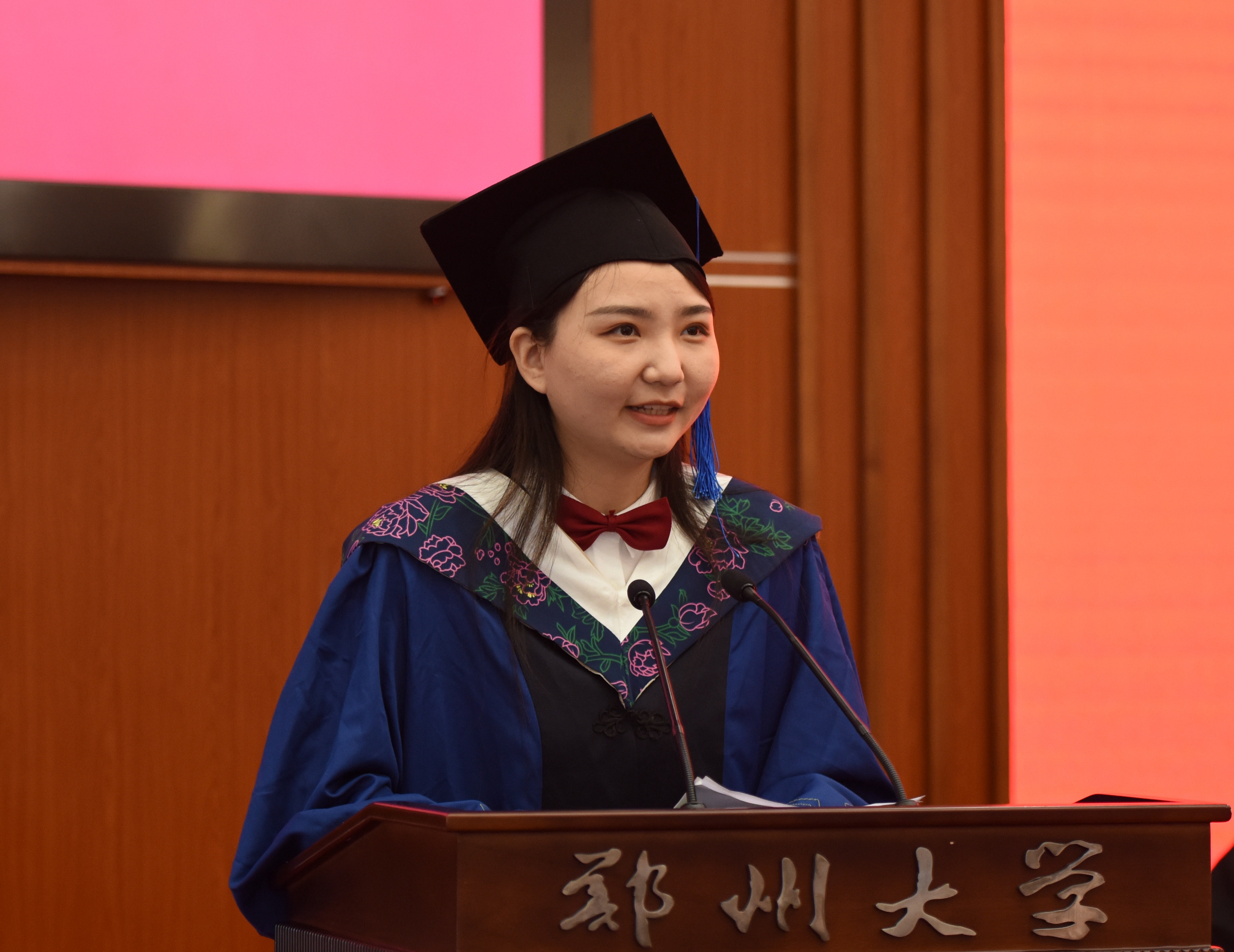 本科生代表、信息工程学院刘佳琪,研究生代表、医学科学院肖扬,教师代表、化学学院院长曹亦俊,家长代表宁喜红分别发言。