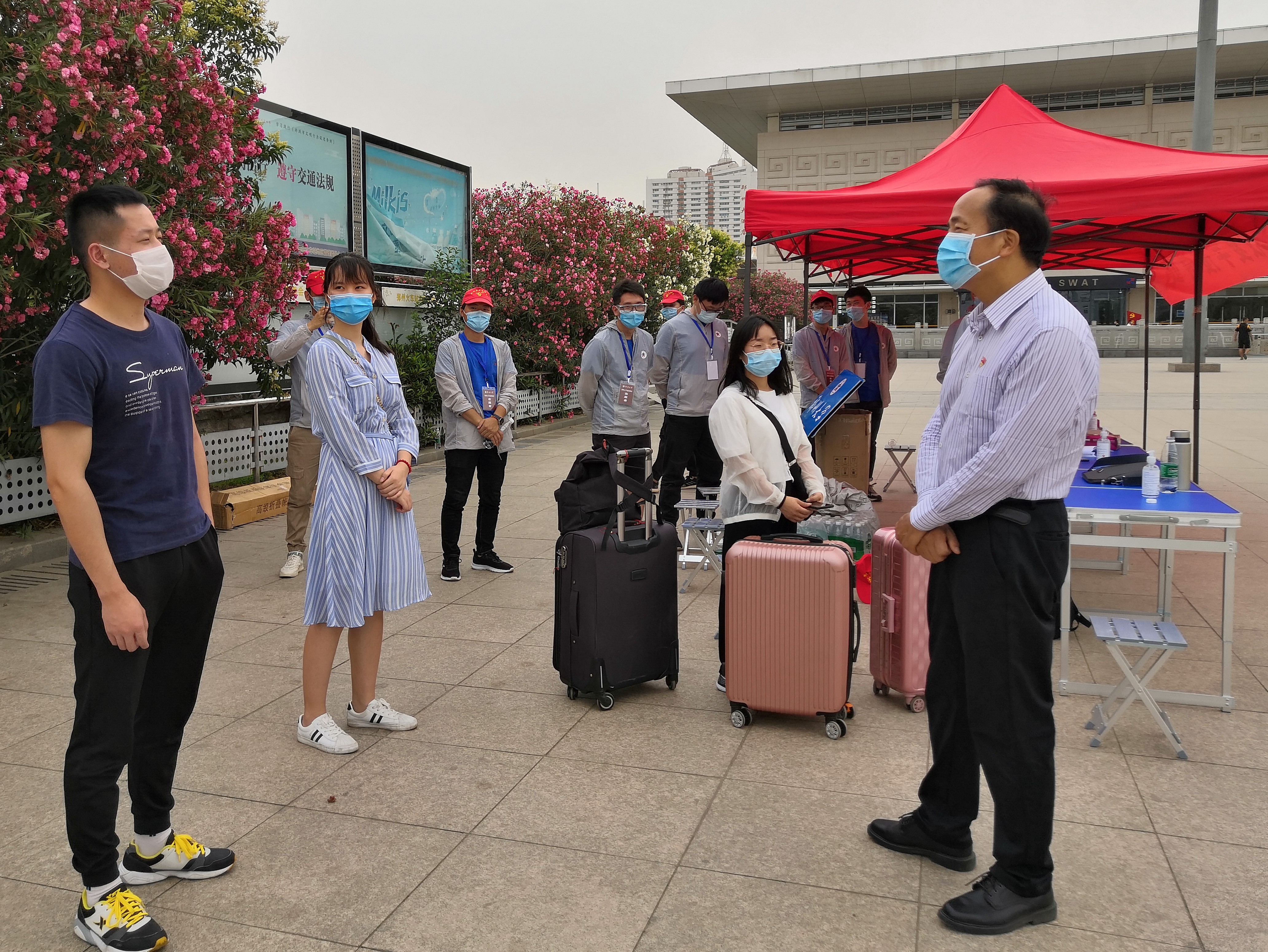 校领导贾少鑫在郑州火车站检查返校复学工作