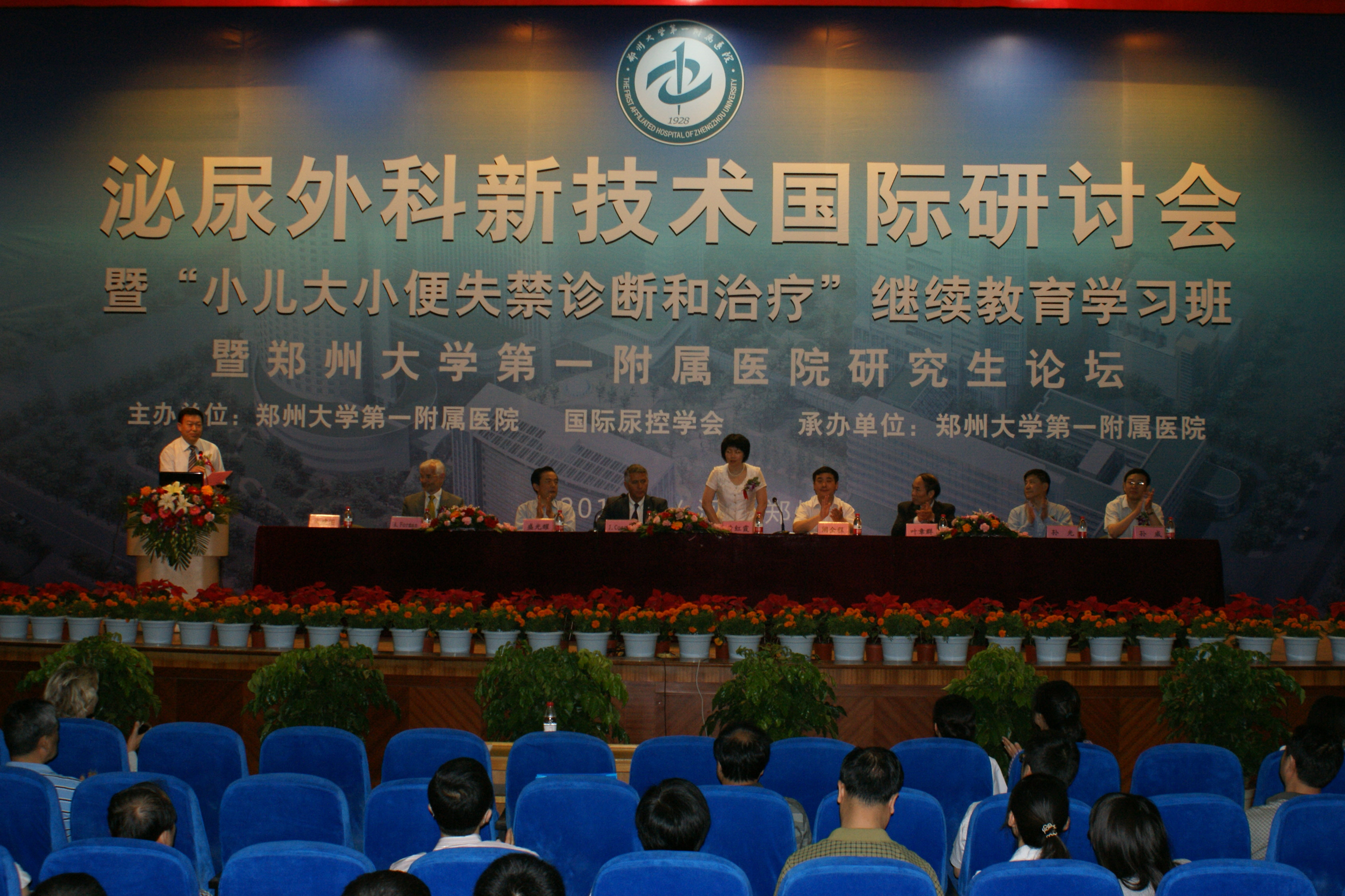 国际尿控协会主席Jacques Corcos(库克斯)教授、丹麦Aarhus(奥胡斯)大学妇产科主任 Axel Forman(福门)教授、中华医学会泌尿外科专业委员会主任委员叶章群教授,副主任委员孙光教授、全国著名小儿外科专家留美学者王果教授、全国尿控学组委员杜广辉教授等国内外著名专家应邀出席会议并做专题讲座。河南省卫生厅副厅长黄红霞,河南省医学会秘书长孙威,我校副校长、第一附属医院院长阚全程教授,党委书记盛光耀教授出席了开幕式。一附院副院长、继续教育项目负责人文建国教授主持了开幕式。