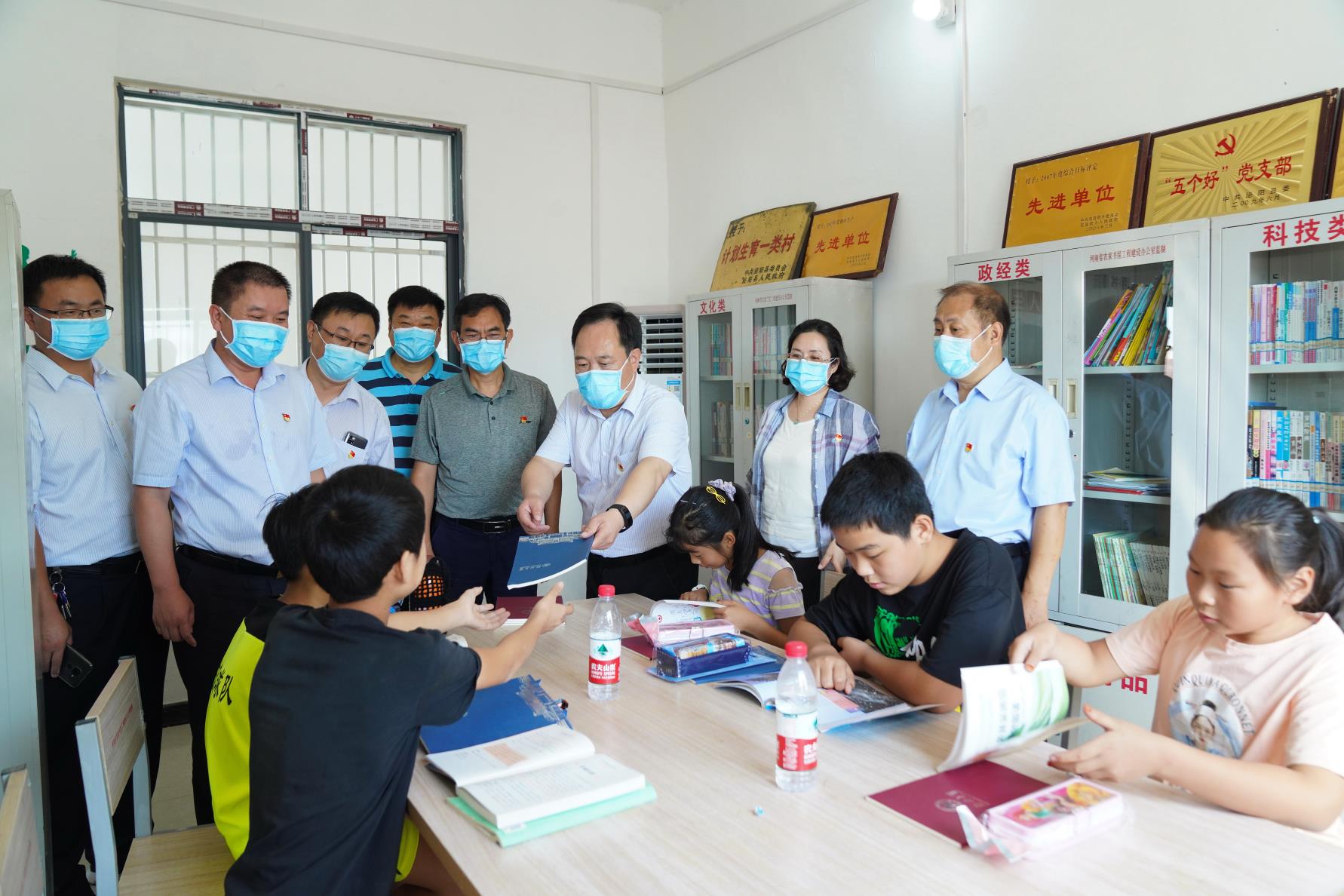 在必赢76net线路官网出版社捐赠的“小康书香图书室”,谷振清一行还向小朋友们捐赠了文具、书本等文化用品,鼓励大家要多读书、读好书,将来成长为一名有用之才。