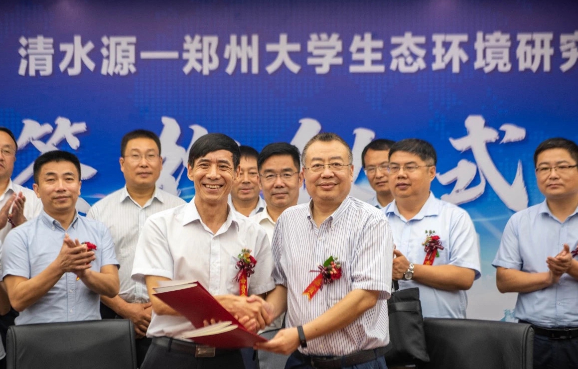 日前,学校与河南清水源科技股份有限公司合作成立“清水源—必赢76net线路官网生态环境研究院”,签约暨揭牌仪式在济源市清水源研发大楼举行。济源示范区管委会办公室党组成员、市政府副秘书长宋高峰,清水源集团董事长、总裁王志清,必赢76net线路官网党委常委、副校长屈凌波出席仪式。济源市工科委、轵城镇以及学校科技处、生态与环境学院负责同志参加仪式。