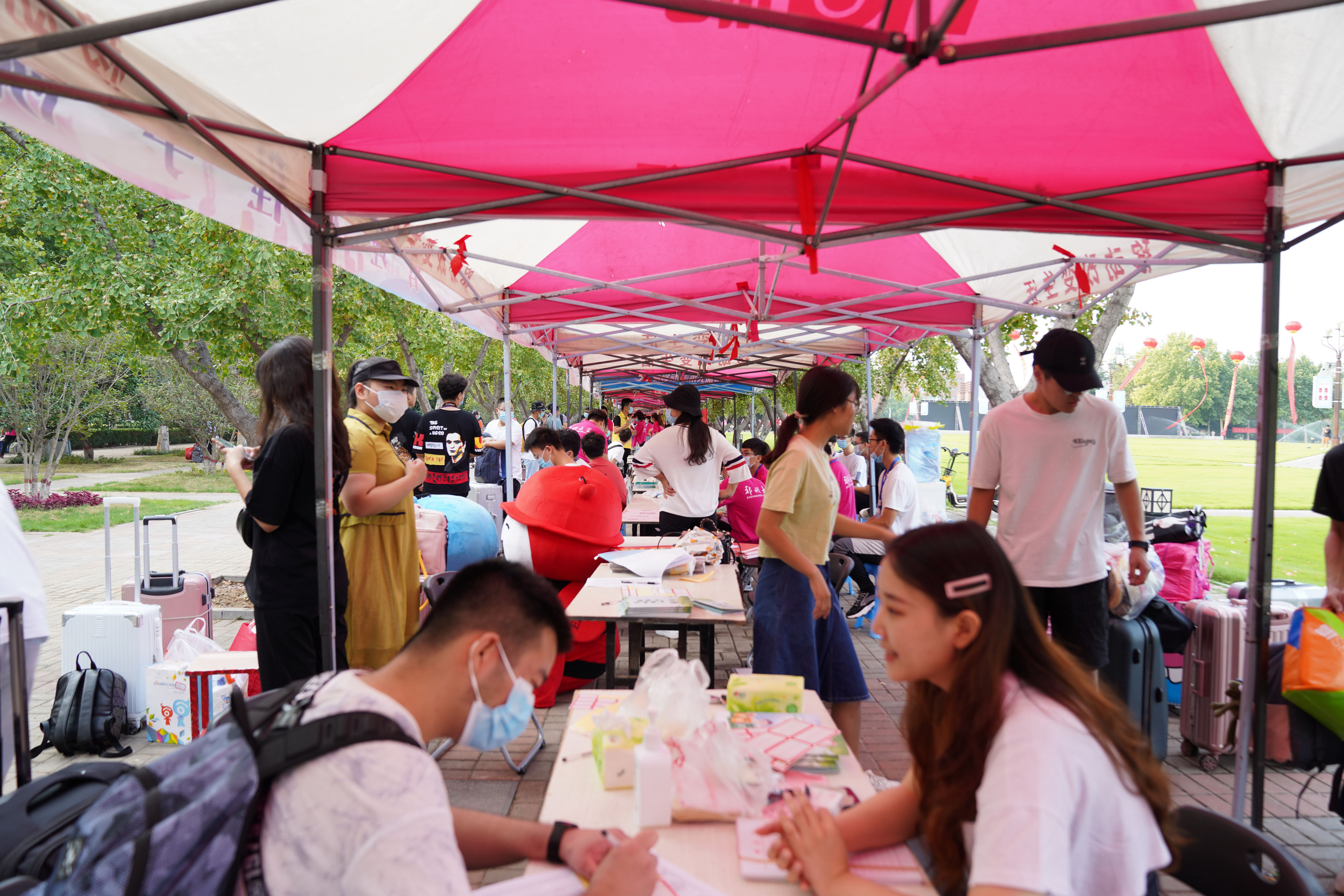 校领导屈凌波、许东升分别前往北校区、南校区和火车站看望奋战在迎新一线的工作人员和学生志愿者,并与新生和家长亲切交谈。