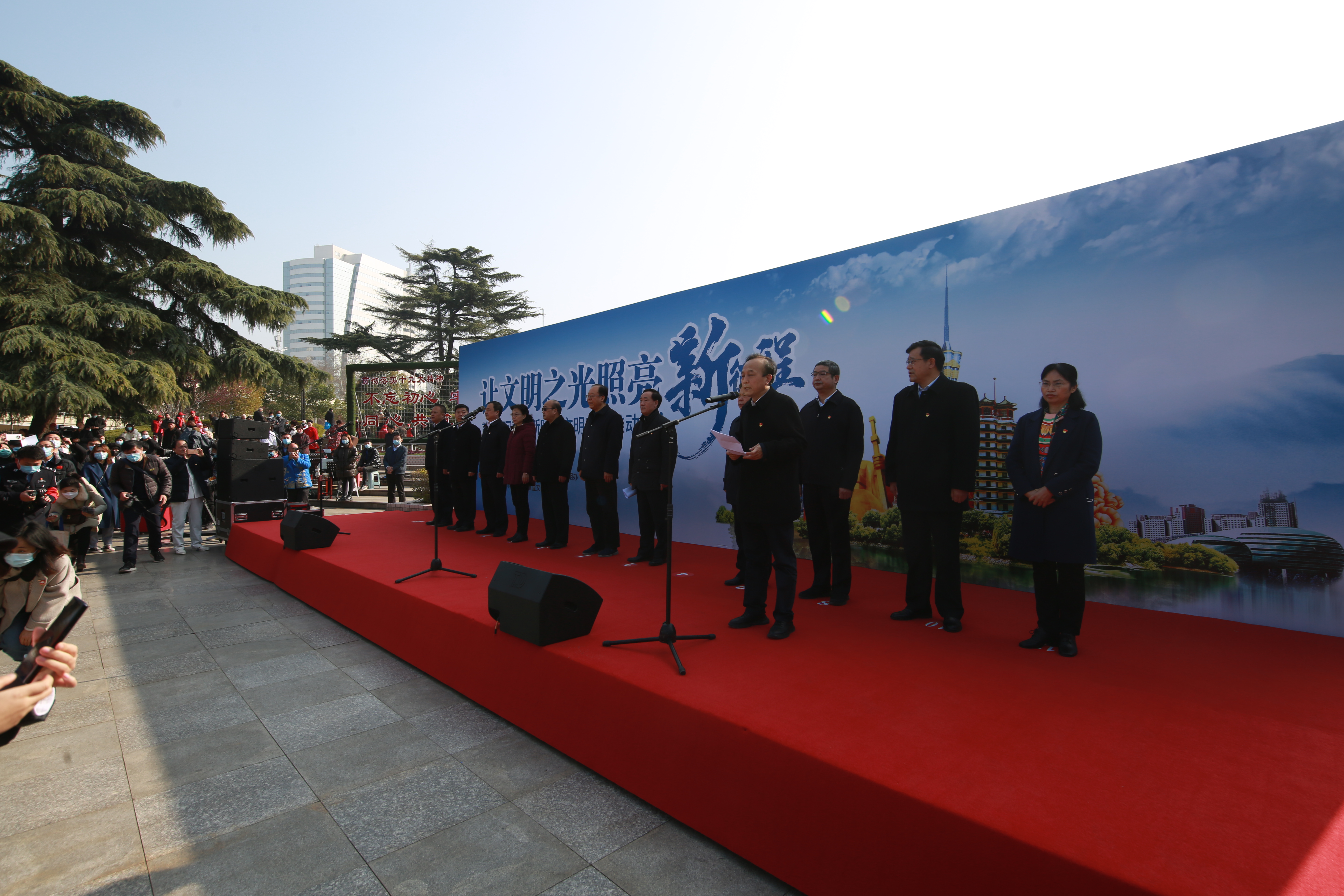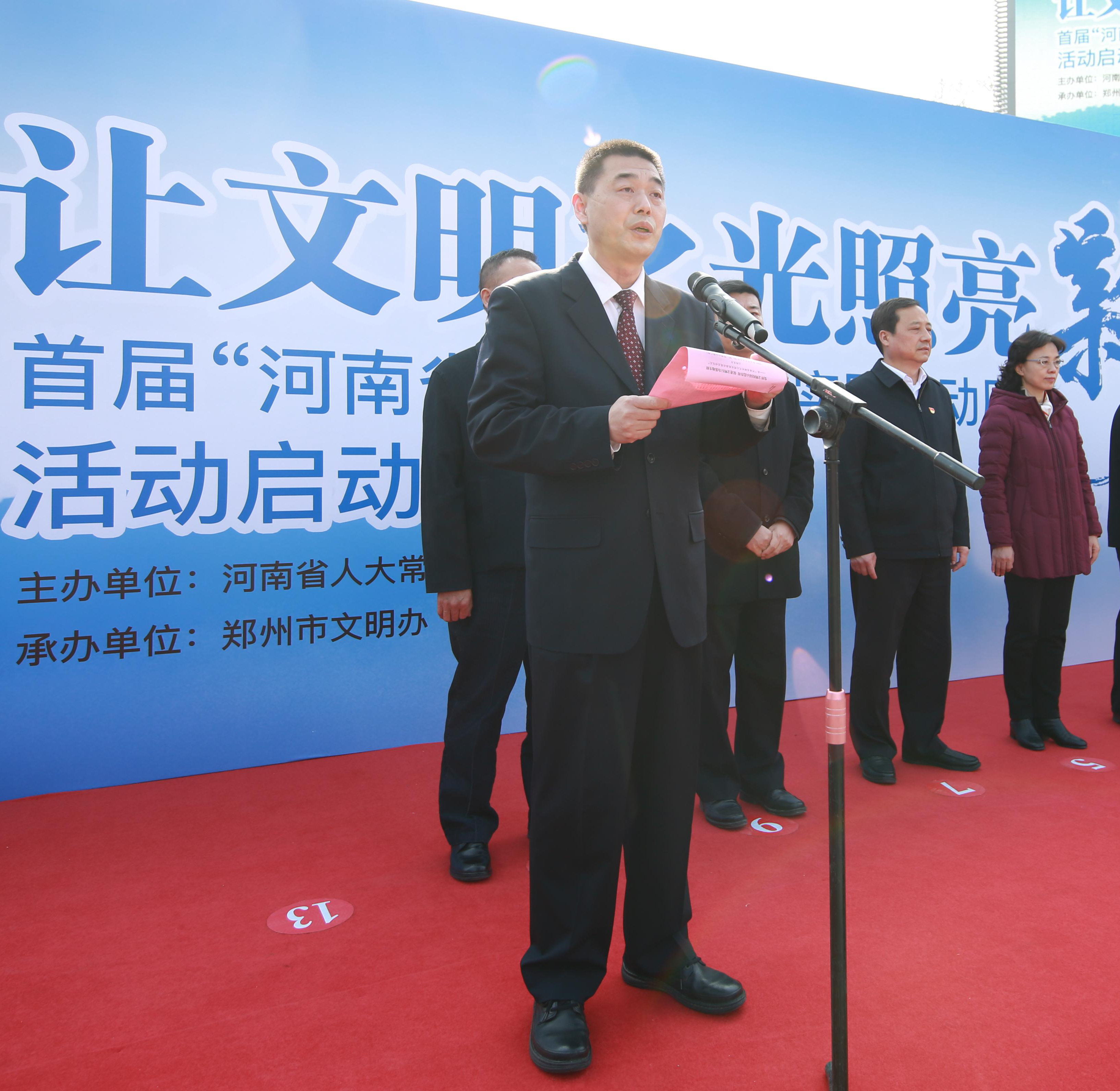 3月2日上午,首届“河南省新时代文明实践推动周”活动集中启动仪式在郑州市紫荆山公园广场举行。省人大常委会副主任马懿,省人民政府副省长、省文明委副主任戴柏华,省委宣传部副部长赵云龙、省直工委副厅级专职委员孙华斌等出席启动仪式。必赢76net线路官网党委副书记吴宏阳参加活动并发言。