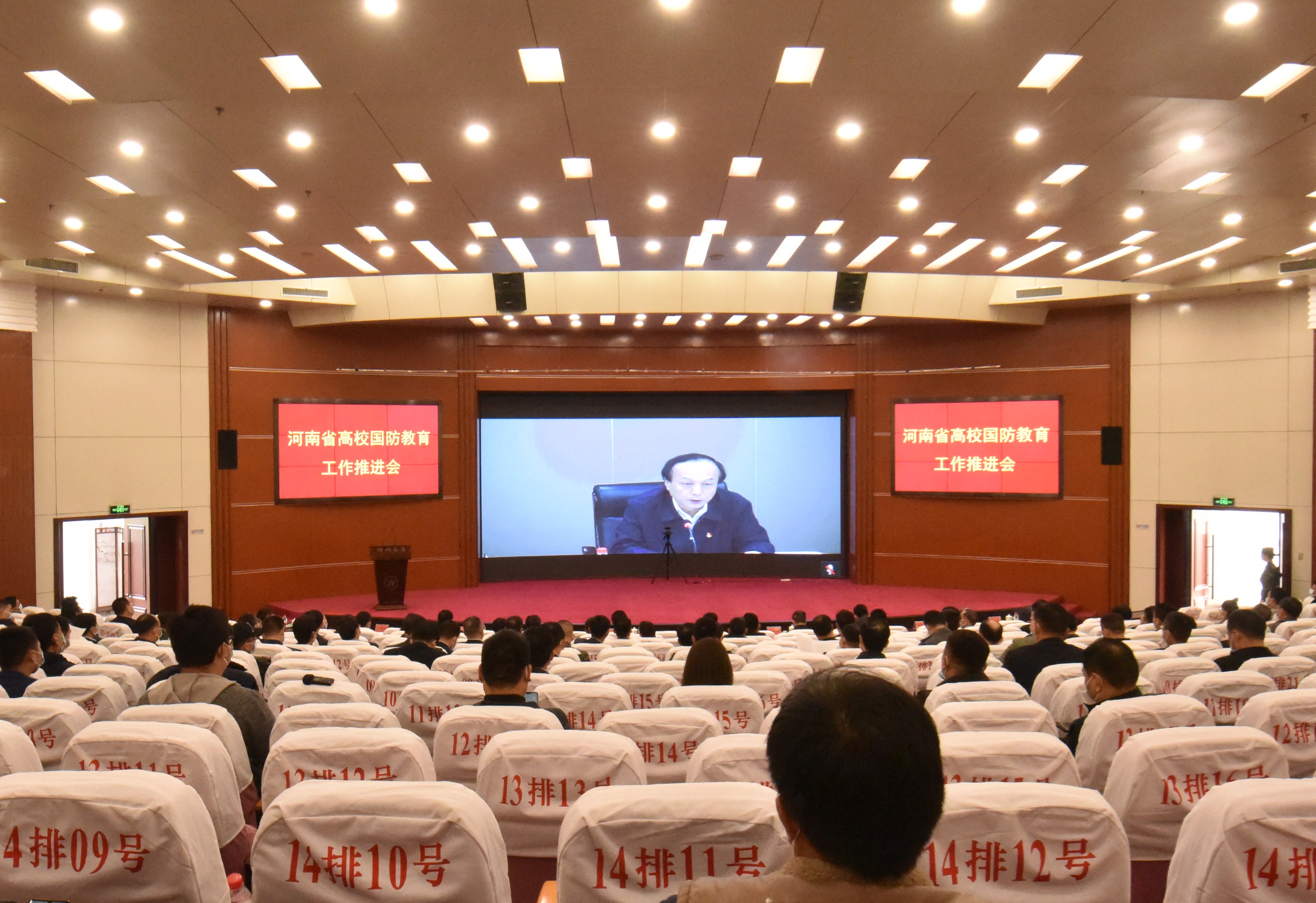 4月22日,河南省高校国防教育工作推进会在省教育厅视频会议室召开。会议深入贯彻学习习近平总书记关于加强全民国防教育的一系列重大决策和指示,突出抓好高校国防教育主阵地,稳步推进国防教育模范高校创建工作,教育引导广大青年学生牢固树立国防意识、增强国防素养。省军区政委徐元鸿少将、副省长霍金花出席会议并讲话,省军区副政委兼纪委书记刘金来少将主持会议。必赢76net线路官网在主校区设立分会场,郑州市副市长马义忠、郑州警备区副司令员许建华、校党委副书记吴宏阳出席,郑州市国防教育成员单位负责领导、驻郑各高校校领导及武装部部长、各县(市、区)人武部主官共计190余人参加会议。