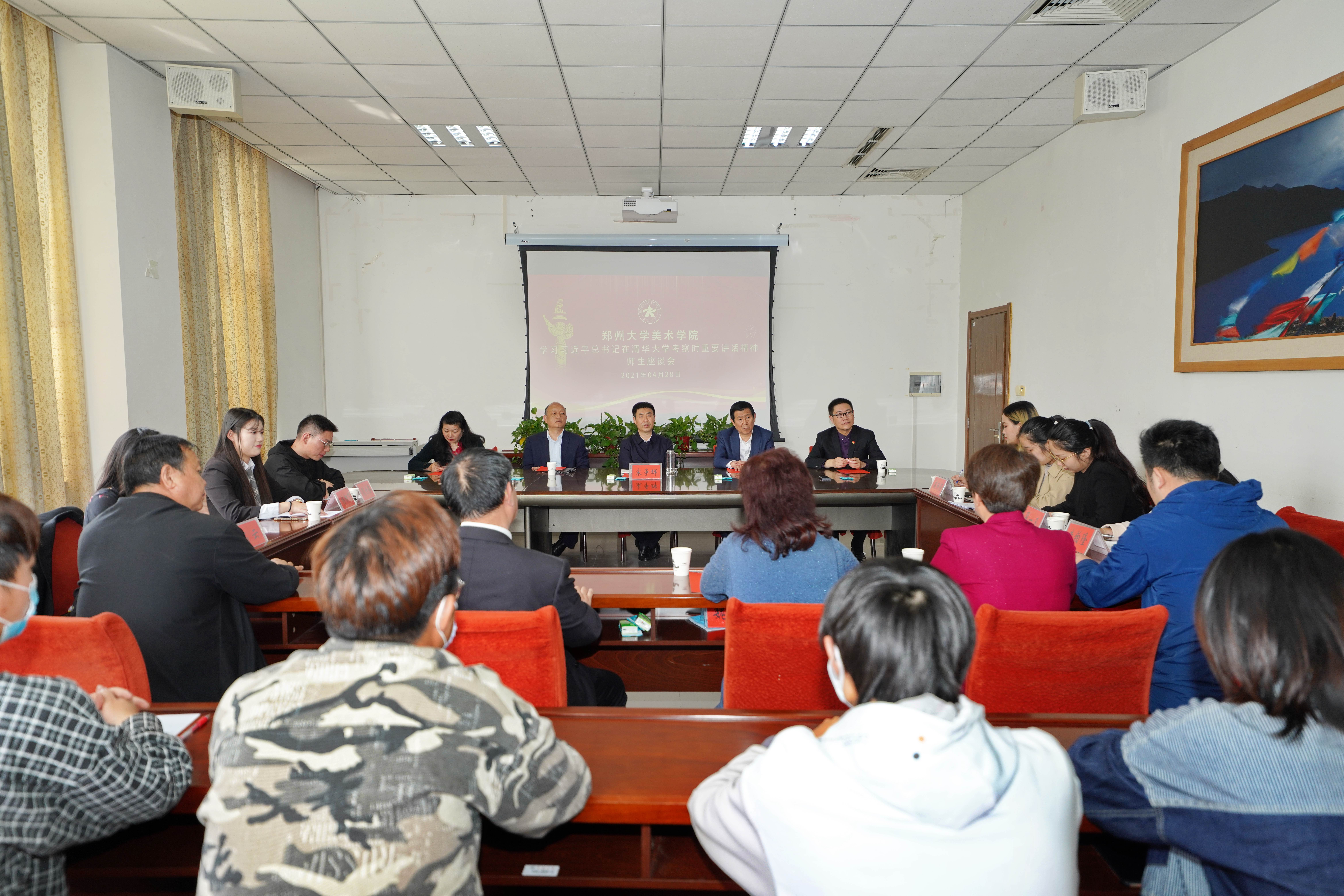 宋争辉在讲话中强调,要深入学习贯彻习近平总书记在清华大学考察时的重要讲话精神,深刻认识美育的重大意义,发挥好美育的重要作用。通过美育落实立德树人根本任务,以培养更多担当民族复兴大任的时代新人为己任,坚持德智体美劳“五育”并举,全面加强和改进美育工作,不断完善“三全育人”体系;通过美育提升学生艺术素养,坚持以美育人、以美为媒、以文化人,教育引导青年学生发现美、理解美、追求美,更好回应自身和人民对高品质生活的需求;通过美育激发创新活力,把握美术、艺术、科学、技术相辅相成、相互促进、相得益彰的规律特点,用艺术激发灵感、产生创造、推动创新,更好服务一流大学建设和经济社会发展。美术学院等承担学校艺术教育工作的相关单位,要担当使命、主动作为、强化协同,发挥综合性大学资源优势,自觉担负美育教育的重要职责,切实发挥育人作用,助推学校人才培养质量提升。