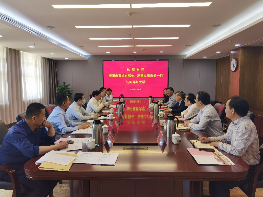 5月8日,濮阳市委常委、统战部部长黄旭东,副市长高建立到必赢76net线路官网访问,双方就校地合作事宜进行座谈交流。省政协副主席、校长刘炯天出席,南乐县委书记刘冰、县长曹拥军,濮阳工业园区及学校发展规划处、化工学院相关单位负责同志参加座谈。会议由副校长关绍康主持。