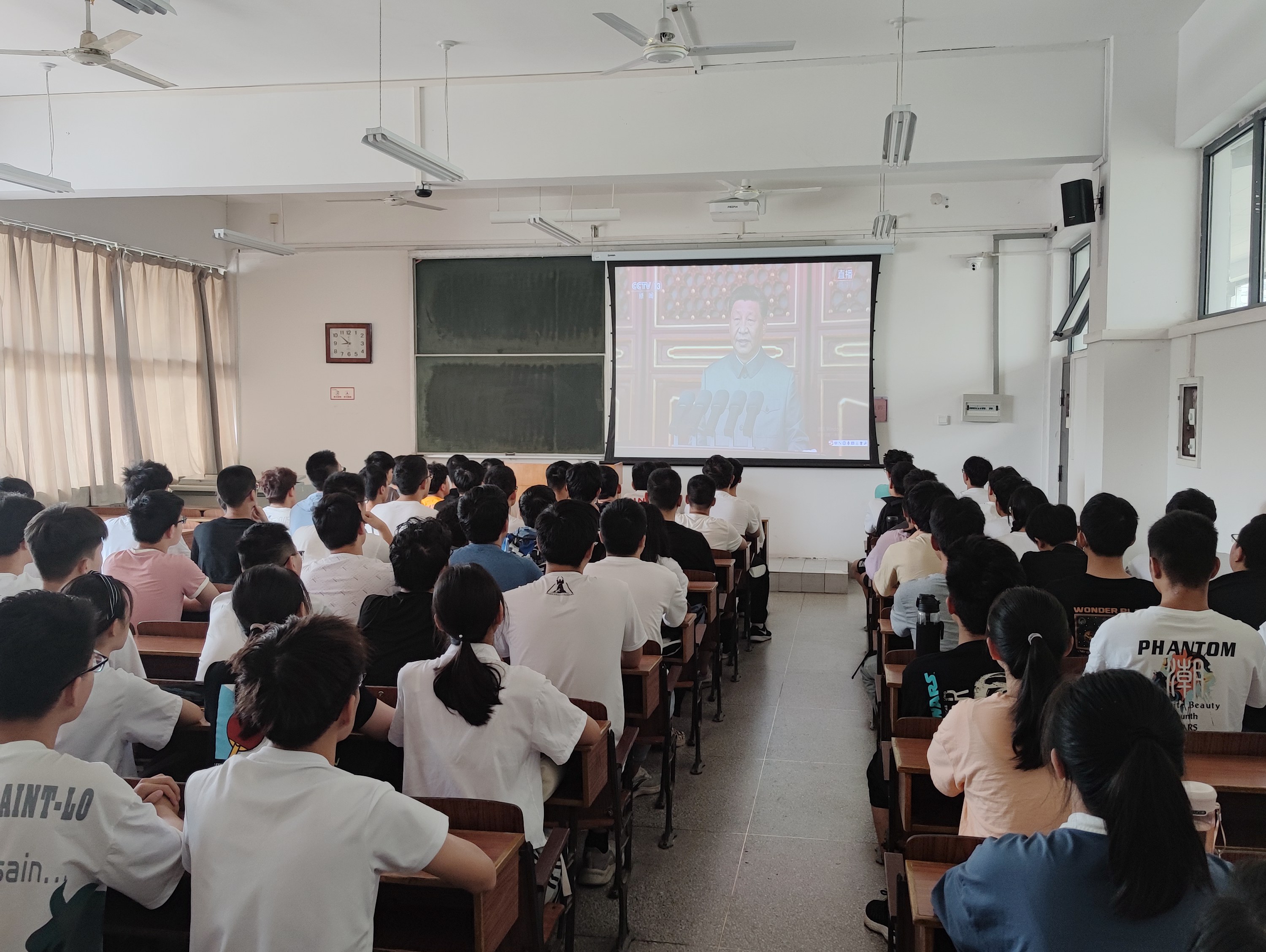 全体在校校领导、机关干部职工代表集中观看大会直播