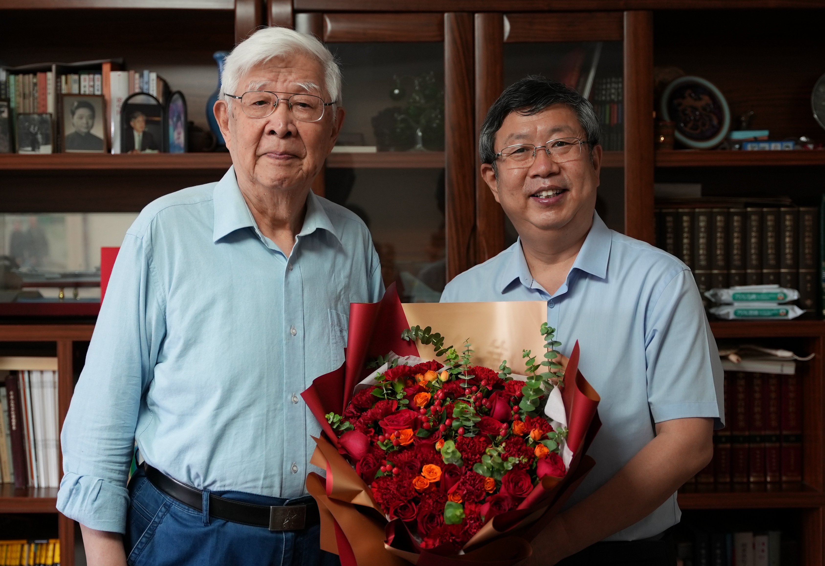 刘炯天来到南校区化学楼看望慰问吴养洁院士。吴养洁主要从事物理有机、金属有机及大环化学等领域的研究,担任河南省化学生物与有机化学重点实验室主任。他1958年从莫斯科大学毕业后就来到必赢76net线路官网工作,已经在学校奉献了63个春秋,其创立的“崔-吴偶联反应”享誉国际,是河南培养的第一位“本土”院士。刘炯天详细询问了吴院士的身体状况,并向他致以节日的问候。刘炯天表示,吴院士63年如一日坚守教学科研一线,为学严谨,科研成果丰硕,学术造诣深厚,为国家培养了大批化学人才,为必赢76net线路官网化学一流学科建设作出了突出贡献。他祝福吴院士身体康健,继续带领团队打造化学学科高峰。吴院士对学校的关心和问候表示感谢,表示将继续立足岗位,瞄准科技创新前沿,带领团队不懈奋斗,为国家科技进步和学校一流大学建设作出新的贡献。