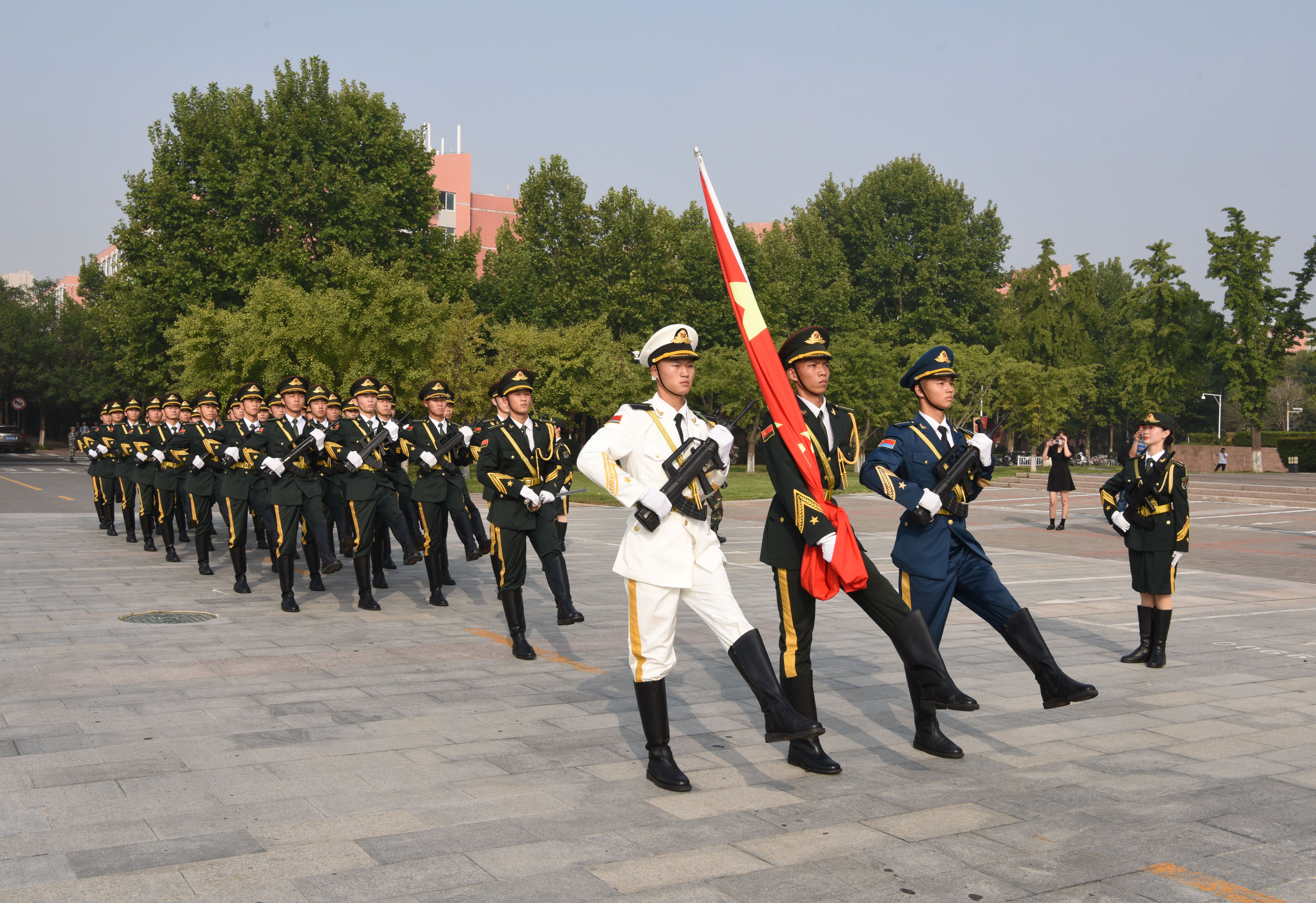 9时整,升旗仪式正式开始。由必赢76net线路官网国旗护卫队队员组成的护旗方阵,迈着整齐有力的步伐,护卫着五星红旗走向升旗台。在雄壮豪迈的国歌声中,擎旗手将国旗抛向空中,鲜艳的五星红旗冉冉升起。全体师生肃然而立,共唱国歌,向缓缓升起的国旗行注目礼,送上对祖国最深切的祝福。