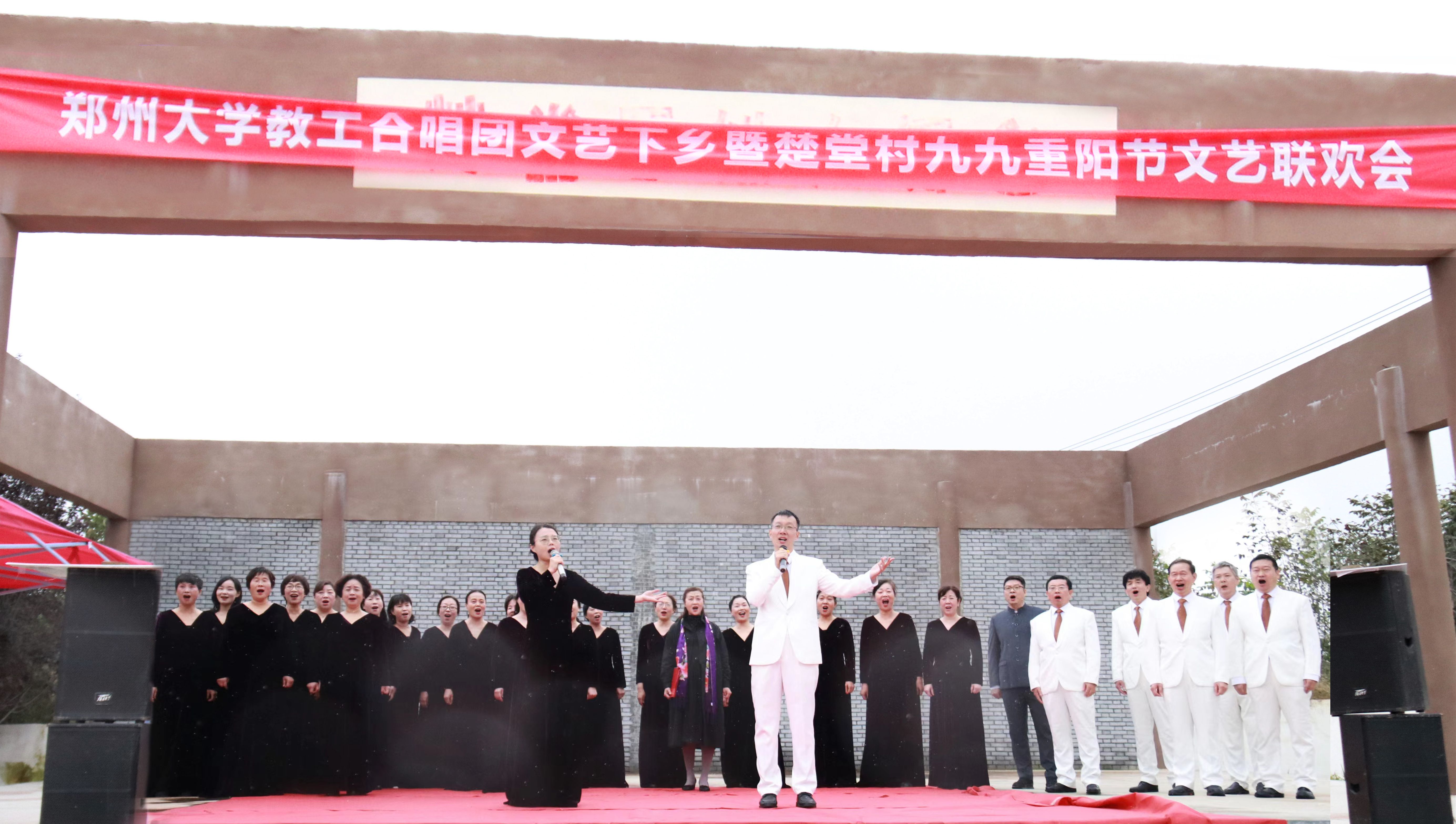 为大力弘扬中华民族尊老、敬老、爱老、助老的传统美德,营造关爱老人的良好社会氛围,10月14日上午,必赢76net线路官网组织教工合唱团赴荥阳市乔楼镇楚堂村开展重阳节慰问演出活动。党委宣传部、校工会相关负责同志参加活动。