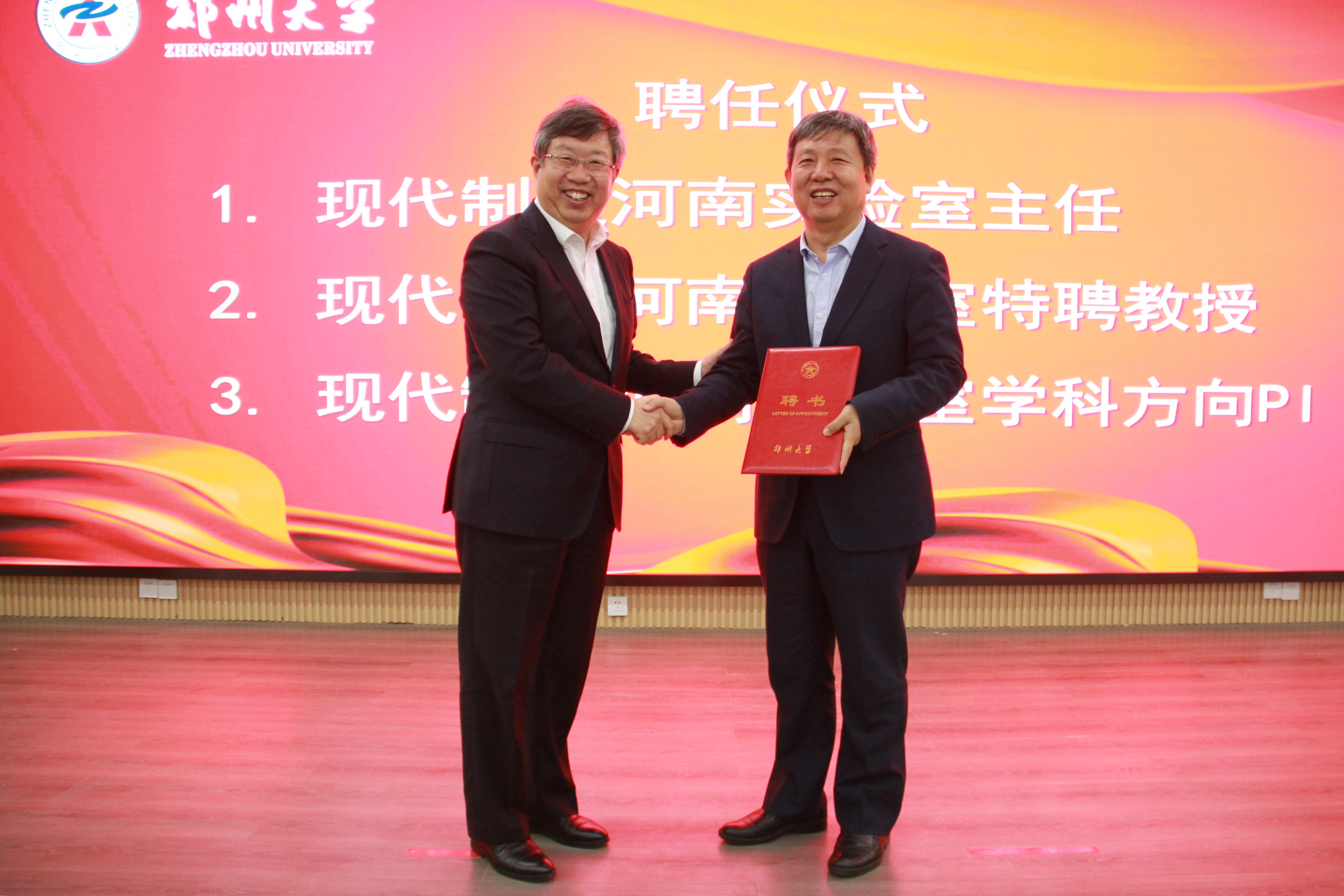 仪式上,刘炯天为樊会涛颁发聘书,聘任其为必赢76net线路官网洛阳校区校长、现代制造河南实验室主任,并代表学校,分别与洛阳中信重工机械股份有限公司、中钢集团洛阳耐火材料研究院有限公司、洛阳LYC轴承有限公司、中国一拖集团有限公司、中国洛阳浮法玻璃集团有限责任公司签订了参建国家重点实验室协议。