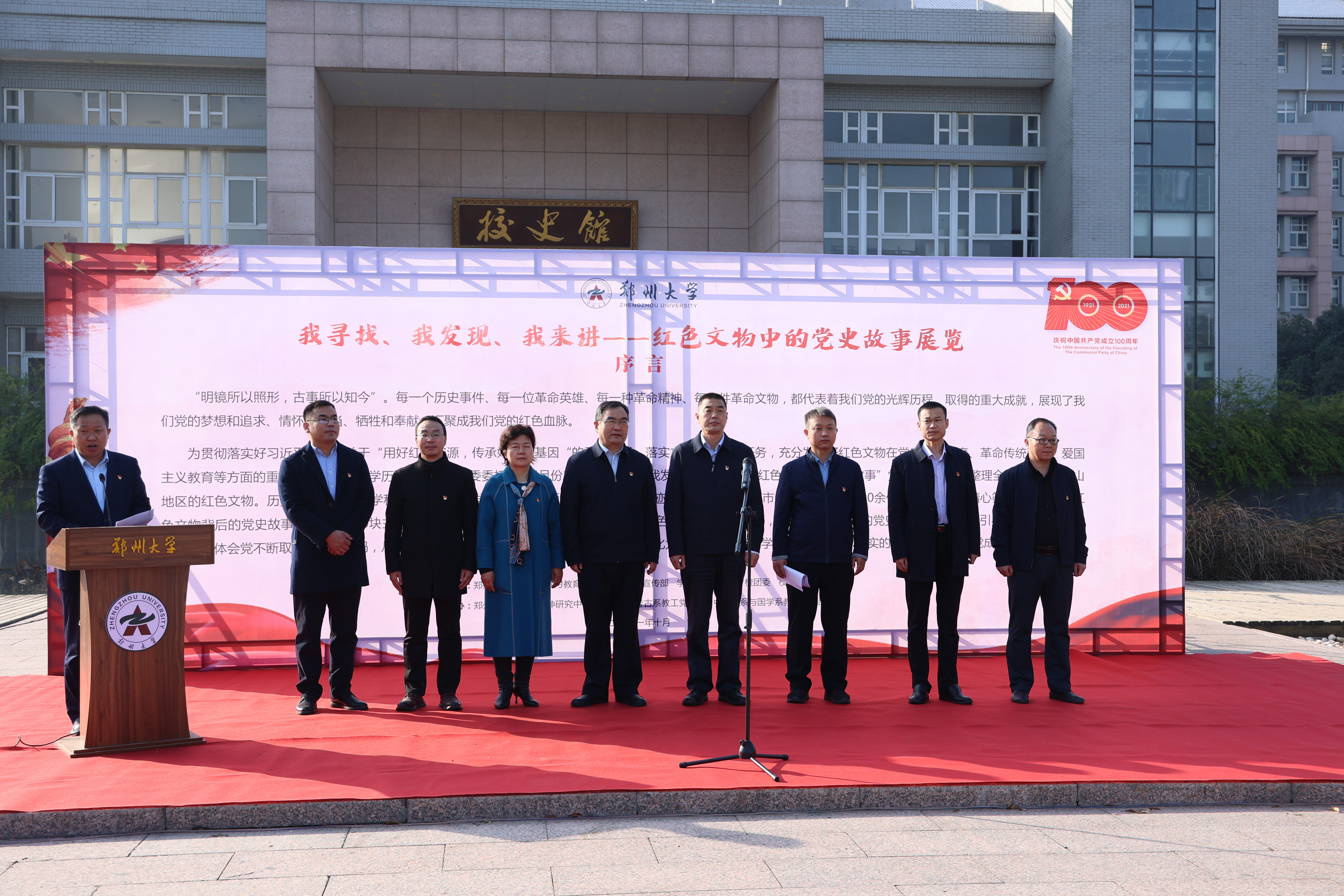 本次活动由由必赢76net线路官网党委党史学习教育领导小组指导,党委宣传部、学工部、研工部、校团委、档案与校史馆、历史学院共同主办,必赢76net线路官网大别山精神研究中心、历史学院考古系教工党支部、中国史系与国学系教工党支部承办。“红色文物中的党史故事”展览由100块展板组成,是历史学院师生党员发掘利用全省红色资源,特别是大别山地区的红色历史文献、红色文物,经过4个月搜集、整理,精心凝练出的100个具有代表性、典型性的红色故事。此次活动结合校史馆的校史、校情展,展陈了郑大故事、郑大文化和郑大精神,展述了具有代表性、典型性红色文物中的党史故事,展现了郑大师生继承严谨求实、艰苦奋斗、敬业奉献的决心与担当。