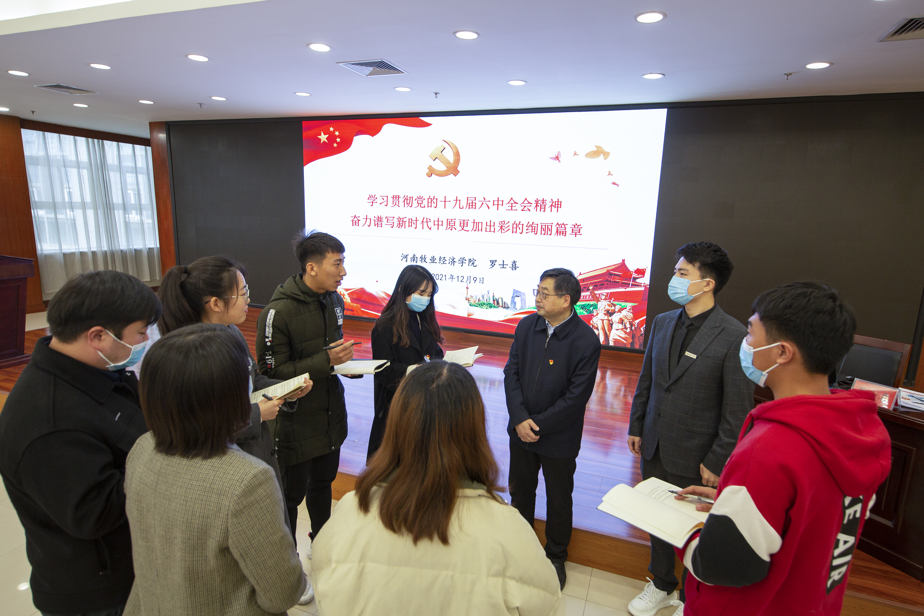 为深入学习贯彻党的十九届六中全会精神,引导广大师生把思想和行动统一到全会精神上来,按照省委统一工作部署,12月9日,省委宣讲团成员、河南牧业经济学院校长罗士喜,为学校师生作党的十九届六中全会宣讲报告。省政协副主席、校党委书记、校长刘炯天出席报告会,全体在校校领导、校党委理论学习中心组成员、各基层党组织负责同志及师生代表聆听了报告会。会议由校党委副书记吴宏阳主持。