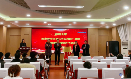 张倩红、韩冰、李运富、甘剑锋共同为国家语言文字推广基地揭牌。
