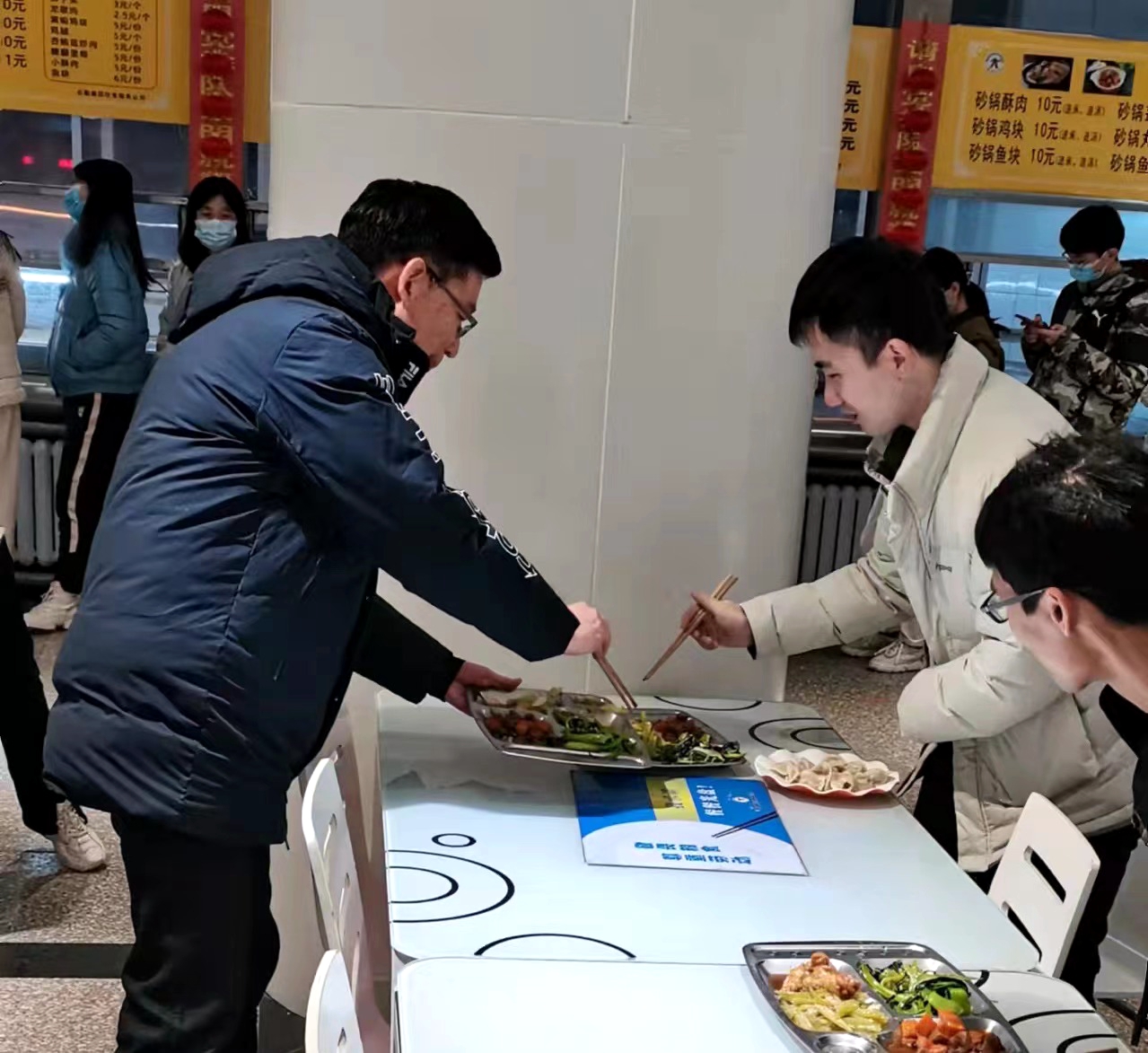 副校长单崇新在南校区和留校学生同吃年夜饭