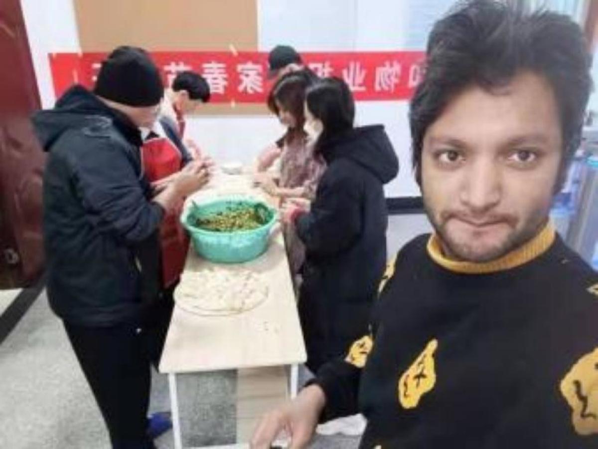 国际教育学院2020级博士研究生Abdullah Al Mamun早早就与朋友约好一起过新年。在朋友家里,几个小孩子轮流给大家表演节目,非常开心。之后他和朋友一家人一起看电视、拍大合照。在大合照中,他怀中抱着朋友家的小孩,满面笑容。大年初一早上,学校的后勤管理人员来到留学生公寓,和大家一起包饺子、庆虎年。他说:“Making dumplings with ‘郑大’ family. A good family feelings indeed…谢谢阿姨叔叔们,谢谢郑大。”尽管家人不在身边,朋友的陪伴,学校的关怀都让他体会到了家的感觉。