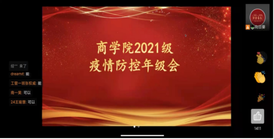 商学院通过集体学习疫情防控相关文件讲话精神、讲解学校关于疫情管控的相关规定和措施、观看校园防疫宣传视频、学习防疫知识等环节使全体同学认识到疫情防控的严峻形势,做好个人日常防护,积极配合学校疫情防控相关举措。学院还在线上召开疫情防控年级会,叮嘱同学们时刻紧绷疫情防控这根弦的同时,鼓励大家珍惜当下,奋斗在当下。