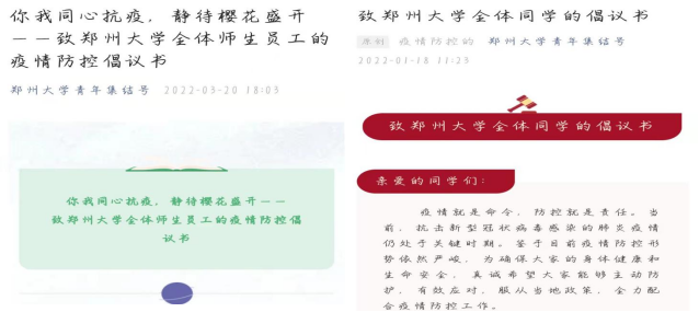 为进一步加强防疫宣传教育引导,校团委充分利用必赢76net线路官网青年集结号、厚德助姐等新媒体平台发布《致全体同学关于新型冠状病毒感染肺炎防治的倡议书》等网络文章,转载河南省教育厅、河南共青团发布的防疫信息和防控成果,专题报道防疫一线干部、党员、志愿者积极投入疫情防控和坚守岗位的典型事迹,从而引导全校师生坚定信心,科学防控,为打赢疫情防控阻击战营造了良好的舆论氛围。