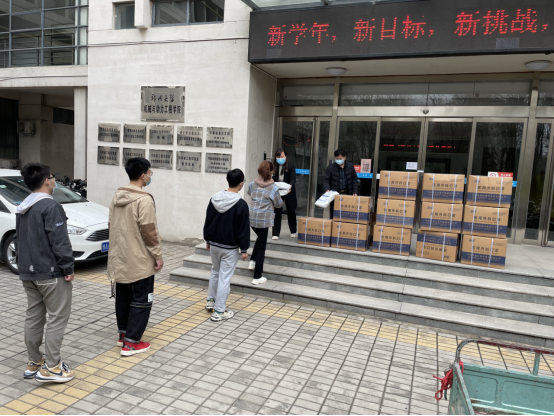 “同学们,快来领取口罩啦!”3月30日下午,学院党委为学生发放了2800多包口罩。院党政班子在发放口罩的同时,督促同学们正确佩戴好口罩,调整好心态,保持正常作息规律,并表示学院将努力及时解决大家生活上的困难和需求。