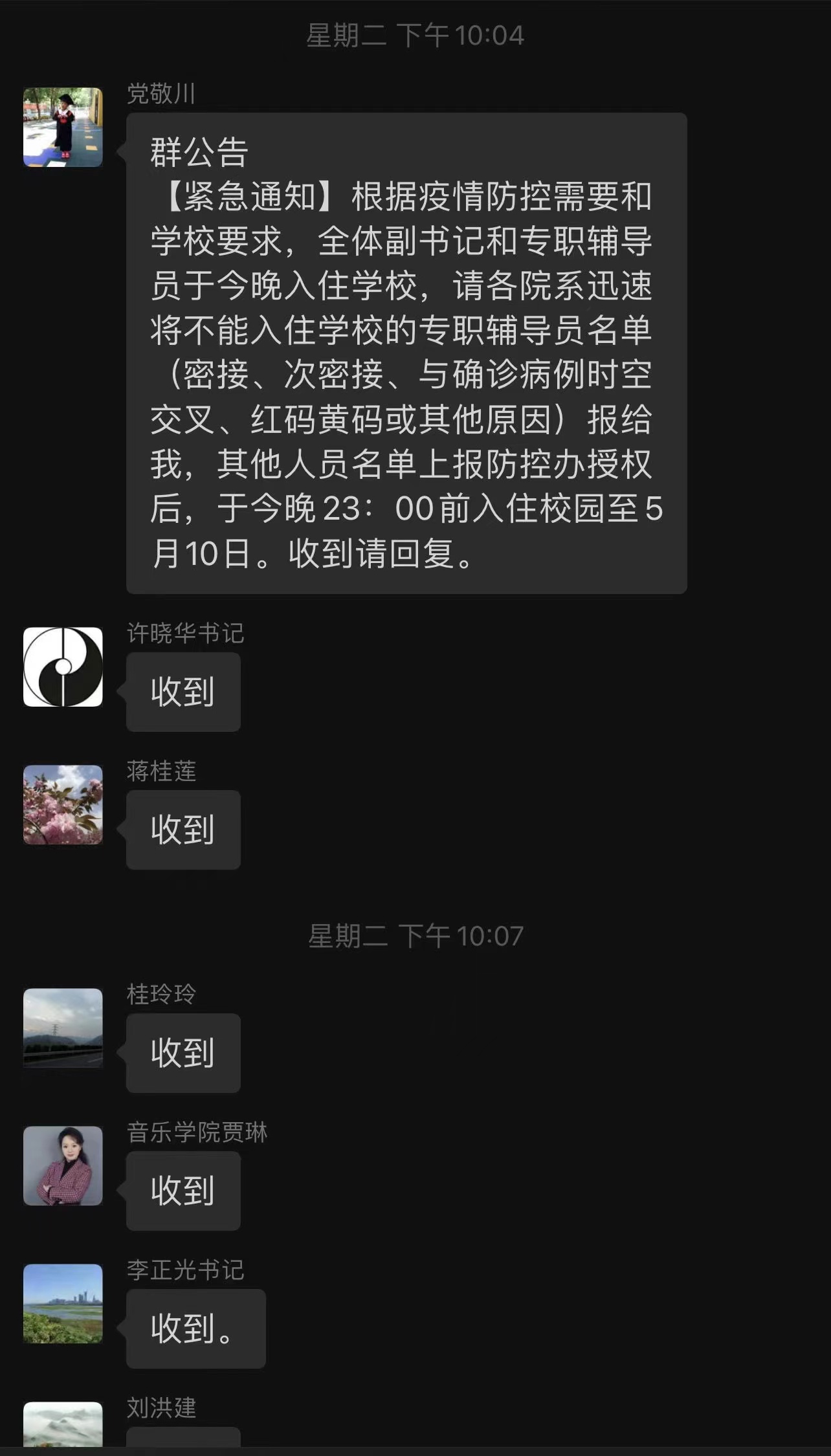 5月3日晚,要求全校辅导员23时前入住学校的通知下发后。微信群里一句句“没事,我可以!”“好的,马上到!”彰显了辅导员的责任担当。很多辅导员初为父母,还需照料家中年迈老人,但疫情面前,他们以学生为本,以学校为家,把老人和孩子托付给家人,简单收拾几件衣服,便义无反顾、毅然决然奔赴学校,以坚定果敢的勇气和坚忍不拔的决心站在了疫情防控第一线。一句句“同学们,未来七天,我们并肩而行。”“疫情当前,你们在哪,我就在哪!”让在校学生安心放心。一些辅导员在校内没有住宿条件,便在办公室、会议室打地铺、搭帐篷、睡沙发,他们克服生活困难,坚守工作岗位,做好学生的一线“守护者”。目前,学校200余名辅导员住校工作。在疫情防控最关键的时刻,在学生最需要的地方,通过全身心、全方位的陪伴,有真情、有温度的守护,用尽全力确保同学们的健康安全。