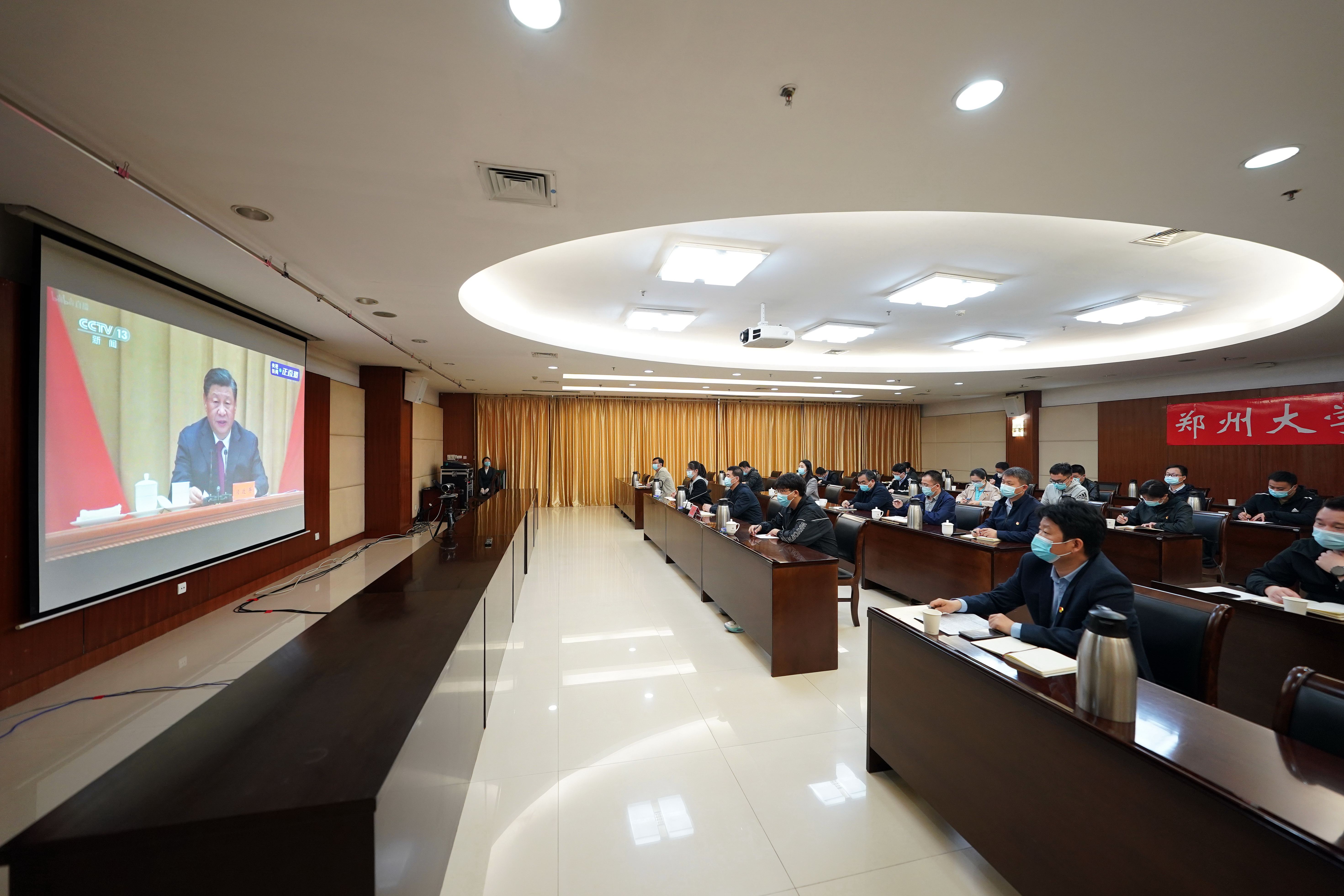 必赢76net线路官网干部师生在主校区综合管理中心集中观看大会直播