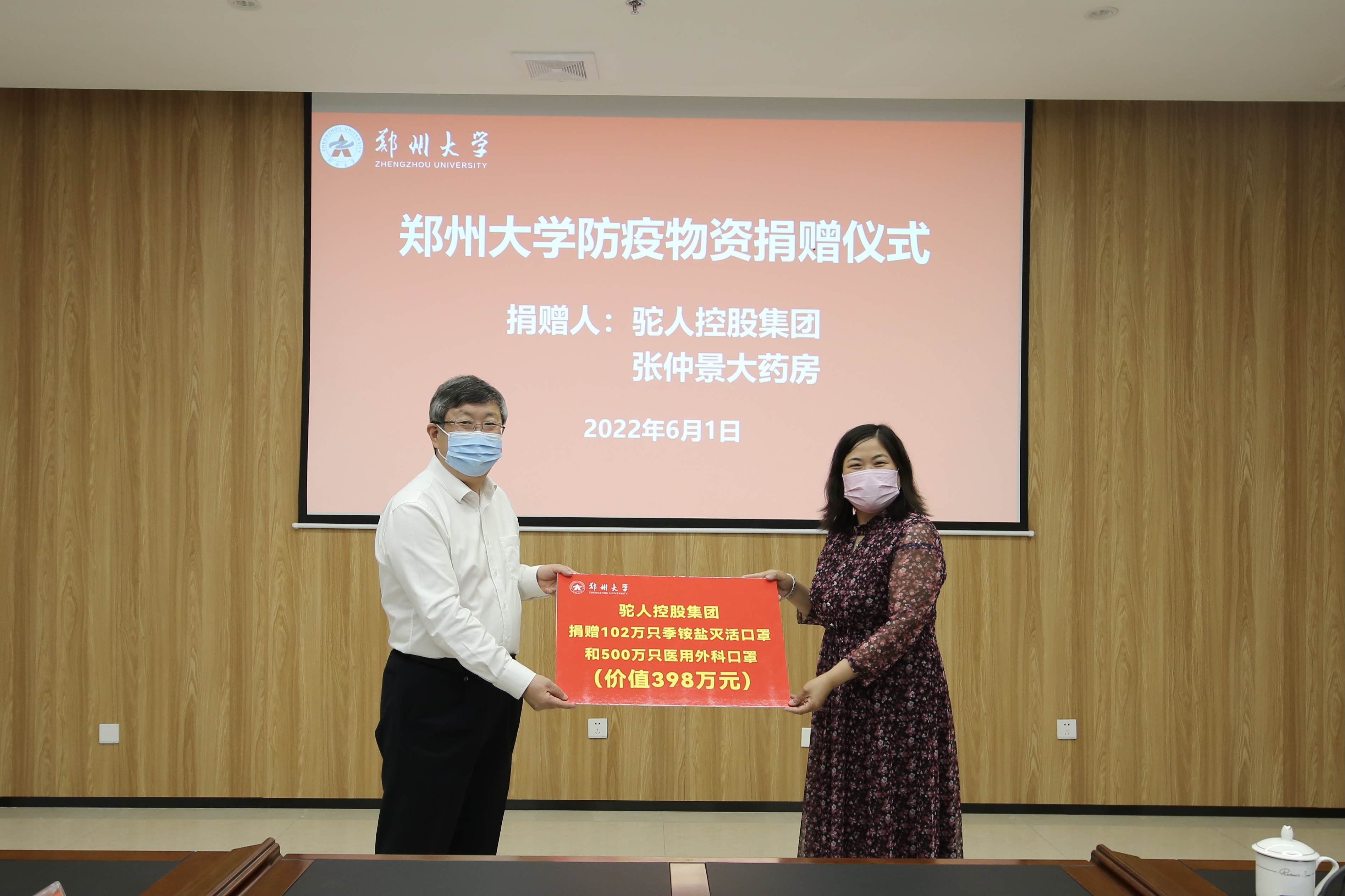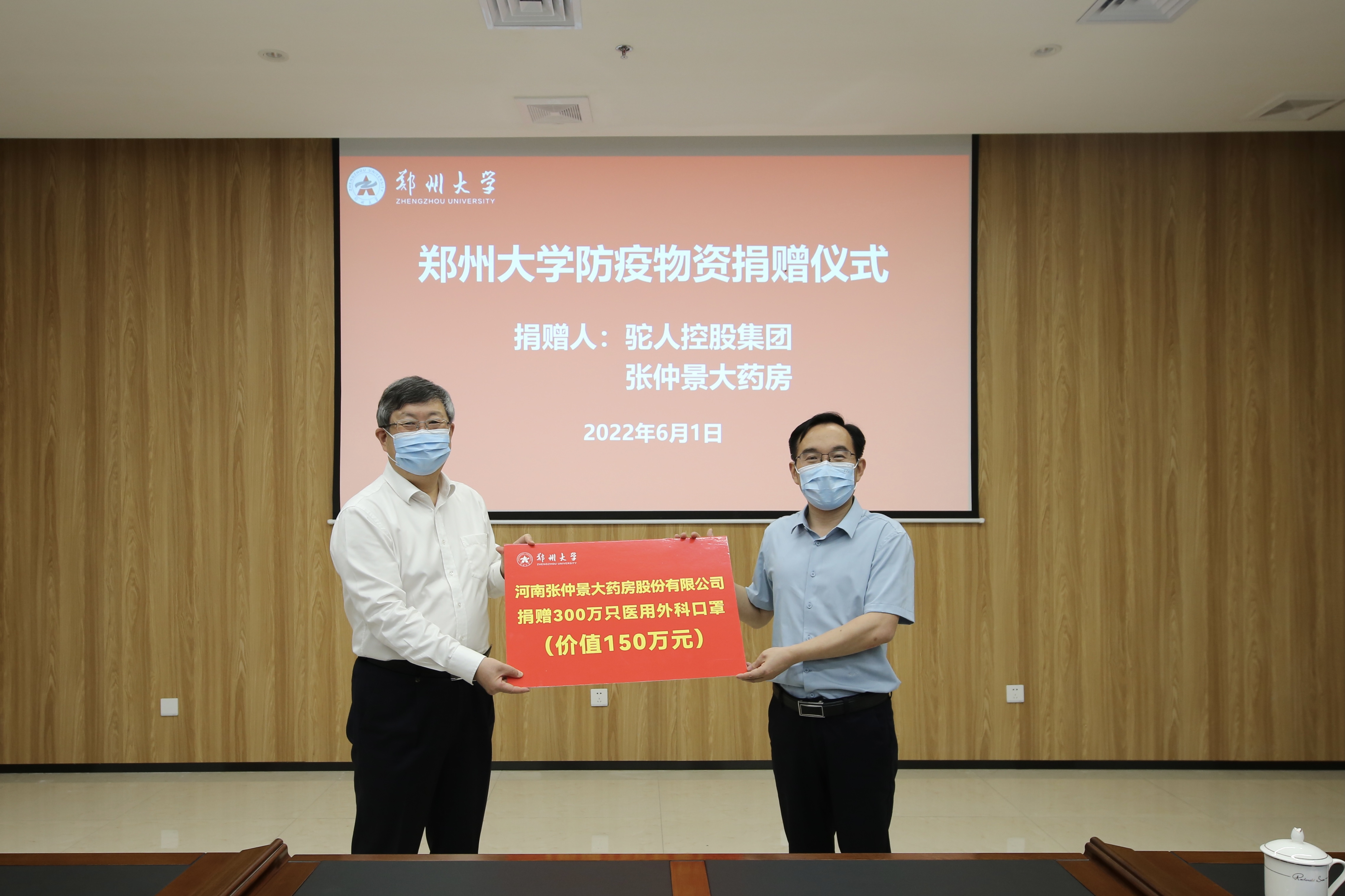 本轮疫情发生以来,学校坚决贯彻省委省政府和属地疫情防控要求,采取果断措施,全力以赴维护师生安全,同时发挥附属医院优势,组织医护工作者支援全国全省疫情防控大局。必赢76net线路官网师生的安全、附属医院医护工作者逆行出征的壮举引起着社会各界的关注和关心。此次,驼人控股集团、河南张仲景大药房股份有限公司,通过河南省中原社会工作发展基金会,向学校捐赠一批防疫物资:驼人集团捐赠季铵盐灭活口罩102万只、医用外科口罩500万只,价值398万元;河南张仲景大药房股份有限公司捐赠医用外科口罩300万只,价值150万元。(李林洁 撰稿 张宁 摄影)