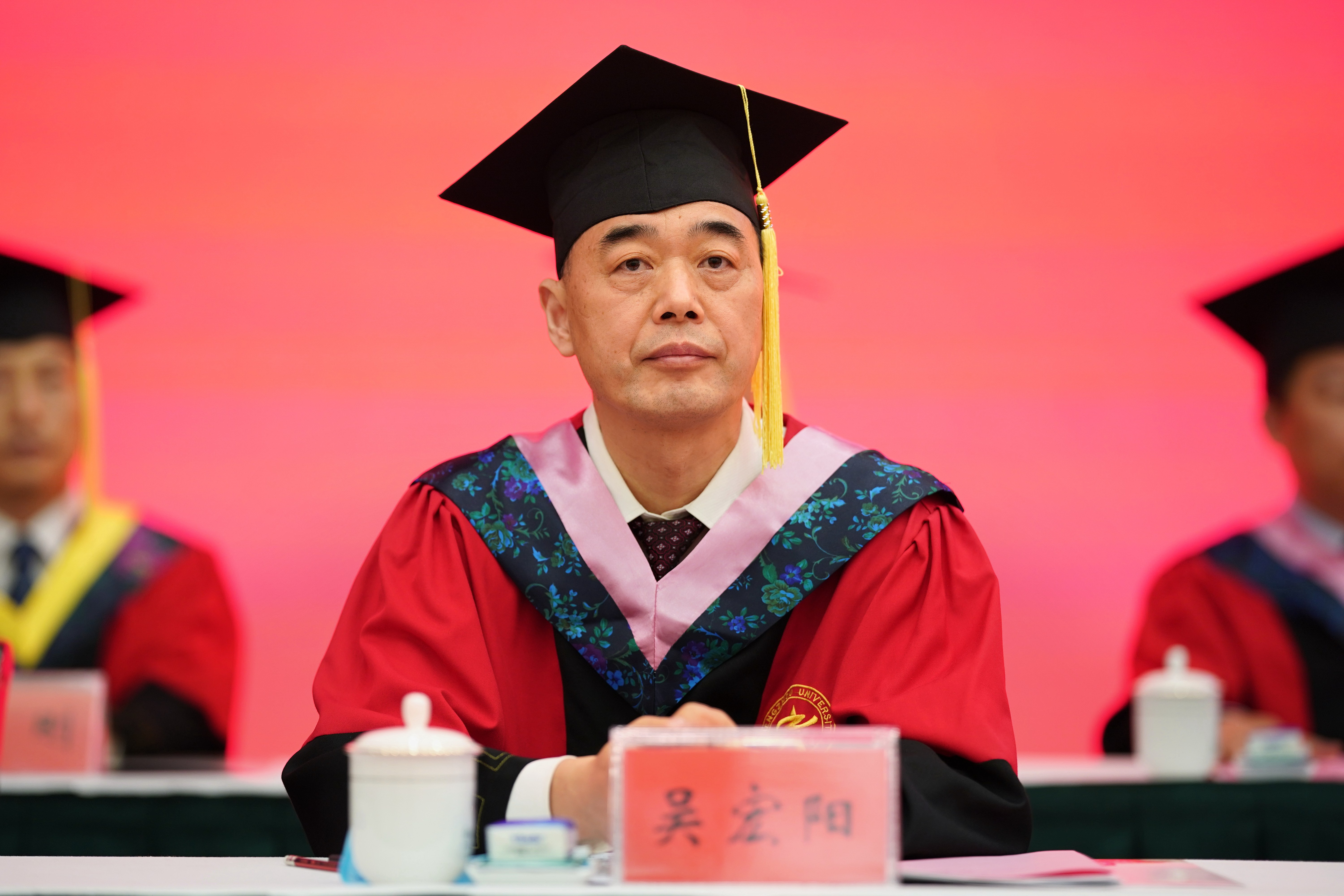 校长李蓬院士为毕业生代表正冠拨穗