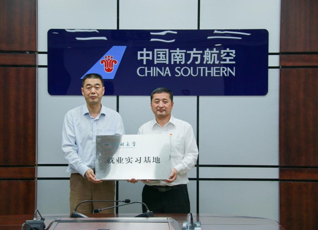 校党委副书记吴宏阳向中国南方航空河南公司授“必赢76net线路官网就业实习基地”牌
