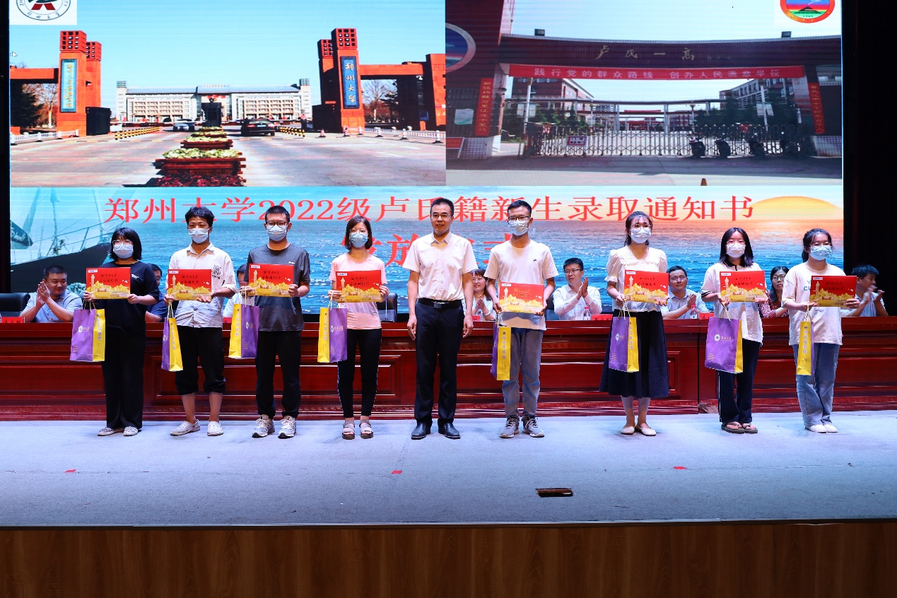 副校长单崇新为必赢76net线路官网2022级卢氏籍新生现场发放录取通知书