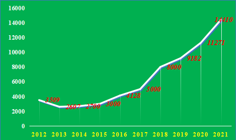 哲学社会科学科研经费共计到款6.38亿元,年度到款科研经费由2012年的3509万元增加到2021年的1.44亿元,具体情况详见图2。
