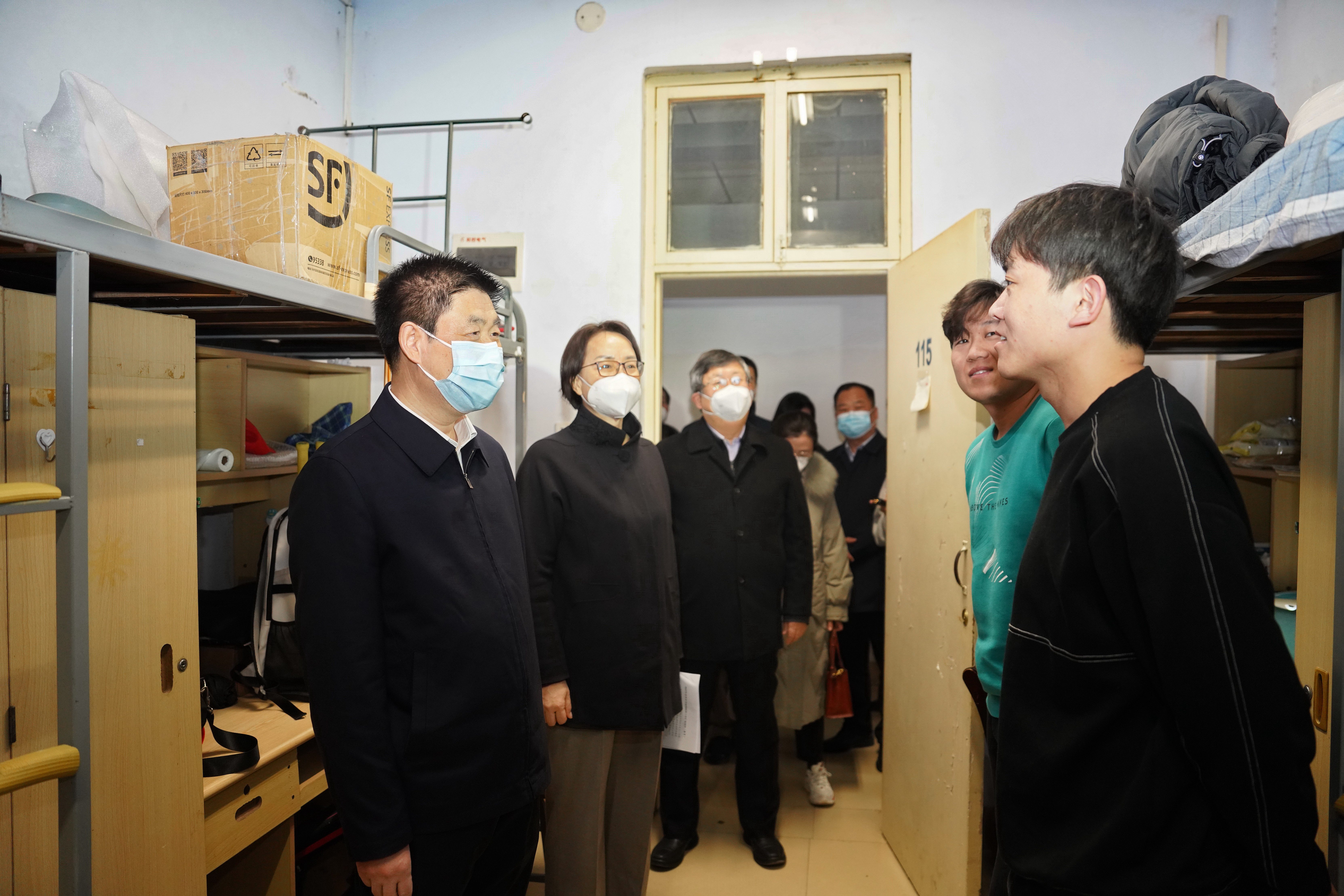 在菊园4号楼学生宿舍,宋争辉详细询问了学生返校计划安排,实地查看了宿舍楼通风消杀情况,与在校学生亲切交谈,并叮嘱他们持续做好个人安全防护。他强调,要突出重点楼宇、重点场所,做好环境采样、宿舍消杀和被褥清洗等相关工作;要全面摸排师生感染情况,组织学生有序安全返校,确保平安开学、开学平安。