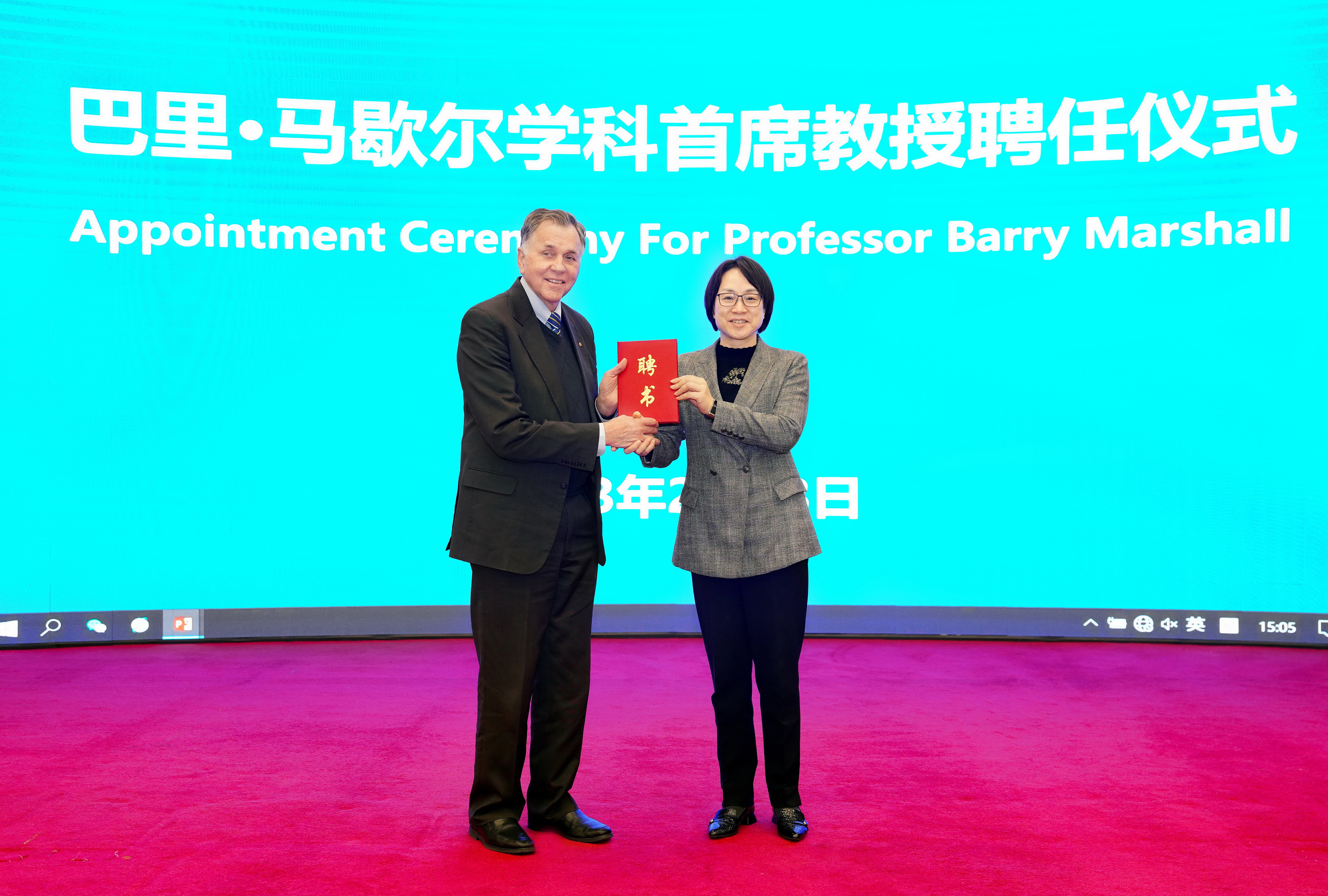 李蓬为马歇尔院士颁发学科首席教授聘书