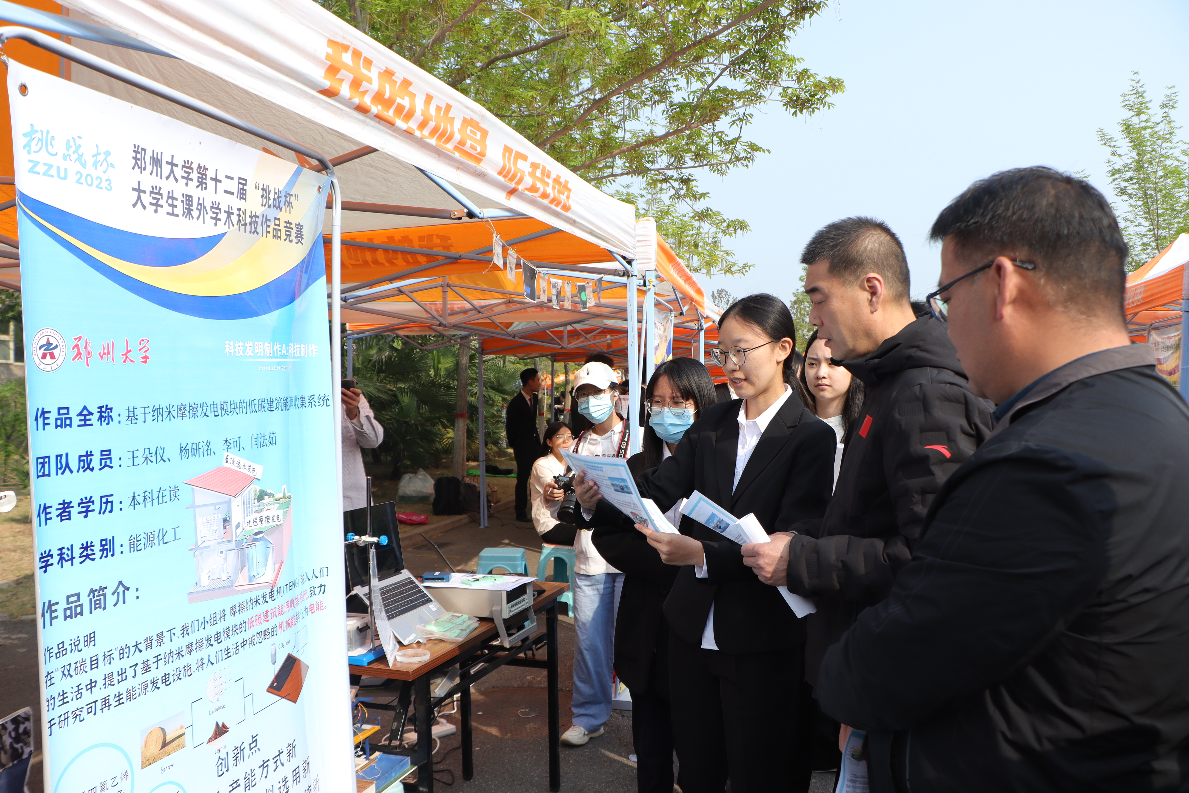 本次竞赛采用室外公开布展的形式进行,受到前来观摩师生的一致好评。开幕式上,吴宏阳充分肯定了全校师生参与竞赛的科研创新热情、高度评价了参赛作品的质量。他表示,“挑战杯”是我校创新育人的重要载体,也是我校在一流大学建设中必须跑赢的一个关键赛道,希望广大同学树立远大理想、牢固树立创新意识,加强基础学习、不断提高创新本领,脚踏实地、积极投身创新实践,争做学术创新的先锋、科技创新的表率,为必赢76net线路官网一流大学建设、为中原大地起高峰、为中华民族伟大复兴做出青春贡献,谱写青春华章。