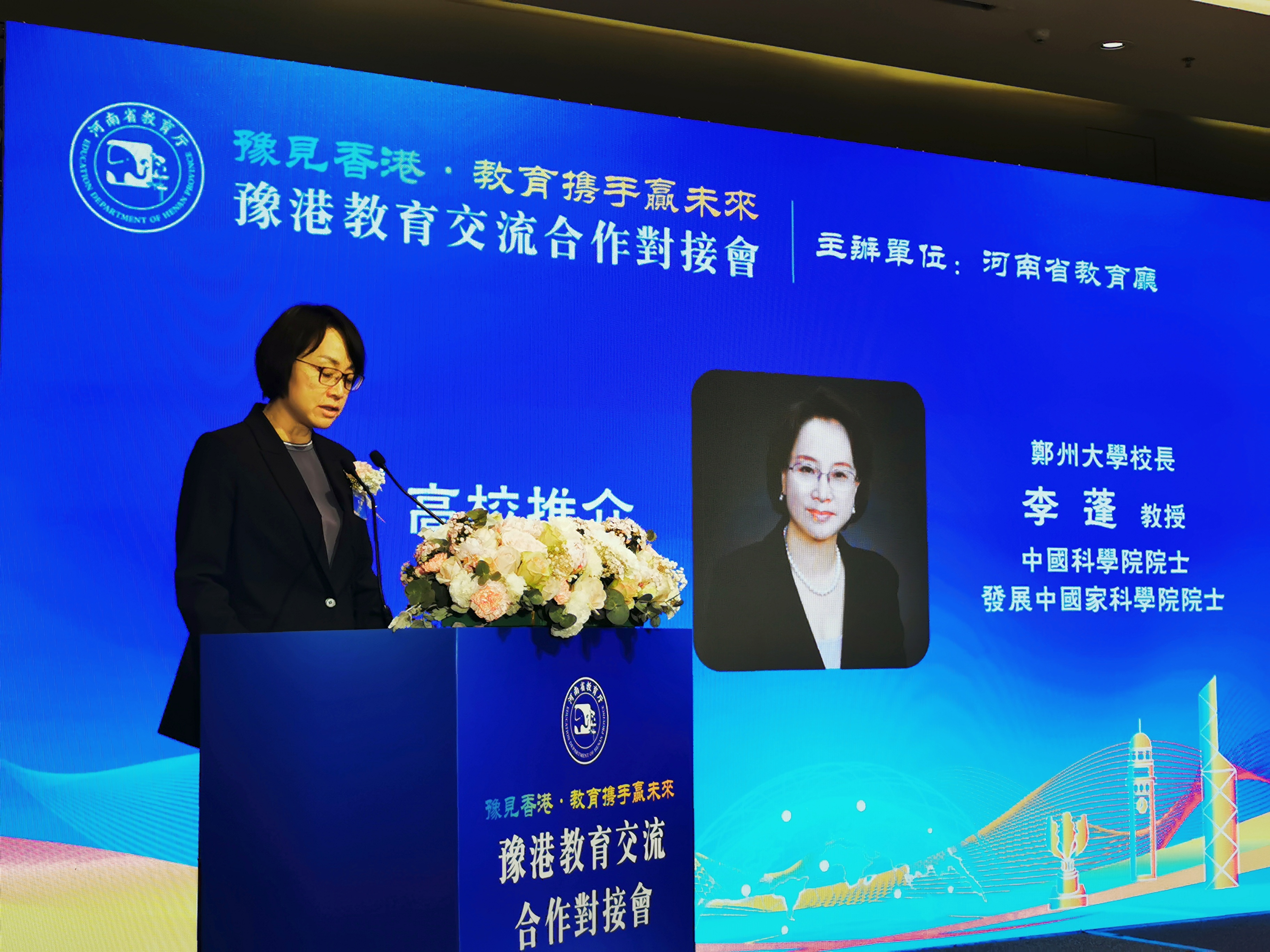 5月17日,李蓬参加豫港教育交流合作对接会,并围绕“深化务实合作 续写发展友谊”作主题发言。她指出,在教育部与香港特区政府的支持与推动下,香港与内地高等教育逐步形成优势互补、协同发展的良好局面;凭借国家战略的叠加优势,河南的发展日新月异,对一流高等教育所提供的科技与人才支撑需求十分迫切。她表示,快速发展的必赢76net线路官网希望与香港高校开展全方位、深层次的交流与合作,努力实现优势互补、合作共赢,共同为河南和香港的繁荣稳定做出积极贡献!