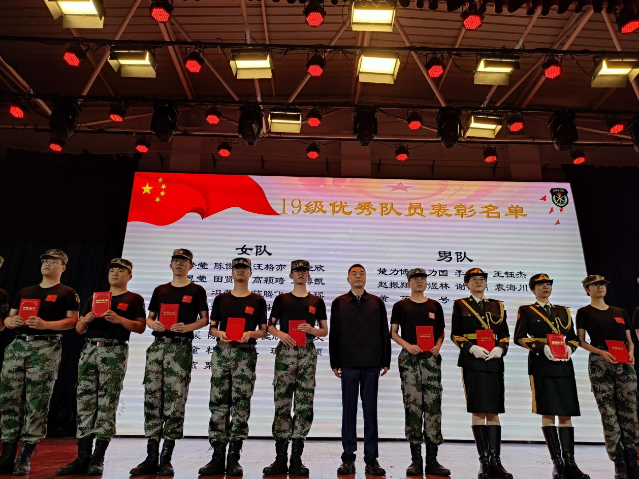 与会领导为优秀骨干、优秀队员颁发了荣誉证书和奖章。国旗护卫队男女队代表分别发言。队员们纷纷表示,感谢母校的培养、教育、关怀和帮助,必将不负母校期望,继续保持国旗护卫队优秀作风,勇担使命,在新的岗位上争创佳绩,为母校争荣光。