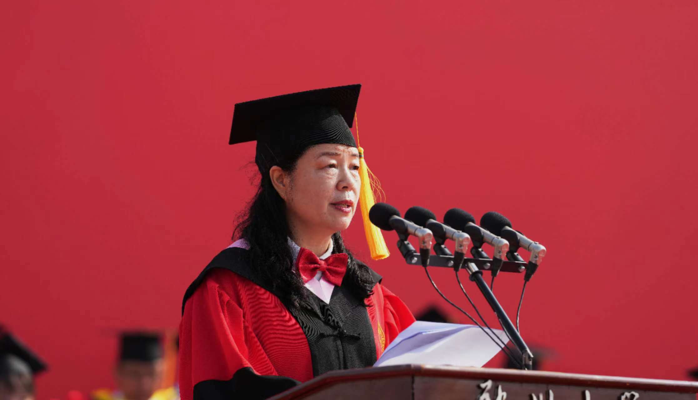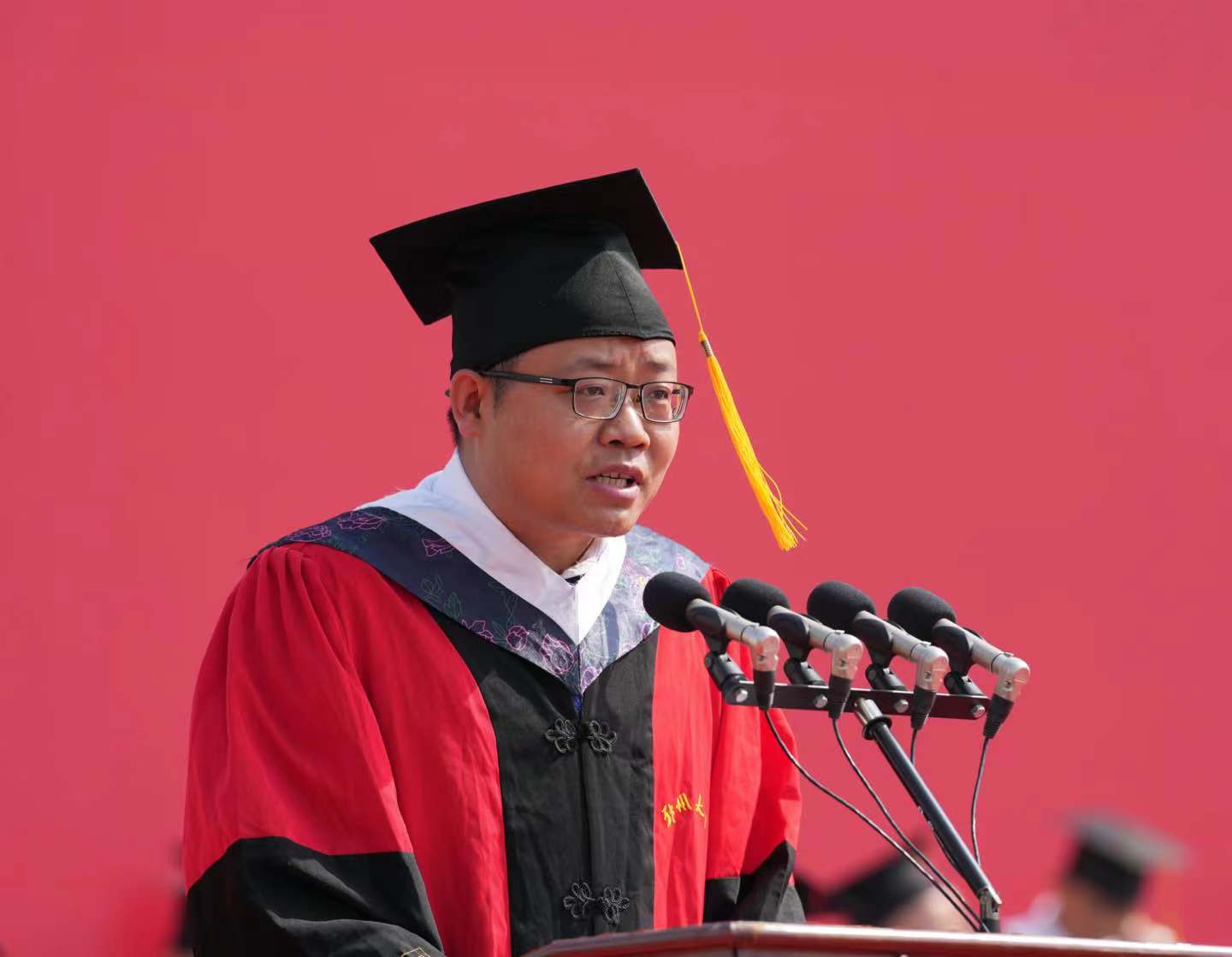 李蓬以《秉持开放,畅意进取》为题寄语毕业生,向2023届全体同学表示热烈祝贺,向各位老师和家长表示崇高敬意。她表示,伴随学校的进步发展,同学们也实现了成长蜕变,在学识积累中变得更加自信,在困难磨砺中变得更加坚强,在品格淬炼中变得更加担当,书写了属于每一个郑大学子的独特精彩。她希望广大学子用开放的胸怀与格局续写荣光,并寄语大家,一要心怀家国,志存高远。笃定“国之所需,吾之所向”的信念,把自己的学业、职业与国家的发展紧密联系,在服务强国复兴中实现个人价值;二要敢于想象,永不设限。在前进道路上不畏艰险、勇攀高峰,用历史眼光看过去,用前瞻眼光看未来,瞄准更高更强的目标,永葆创新之光;三要融通合作,畅意进取。把辩友、诤友和逆境看成加快砥砺前行的磨刀石,广交智者贤者,坚持合作、融通四方。她与同学们许下美好之约,期待同学们以校友的身份带上人生旅途新的精彩重回母校,并祝愿同学们云程发轫、万里可期。