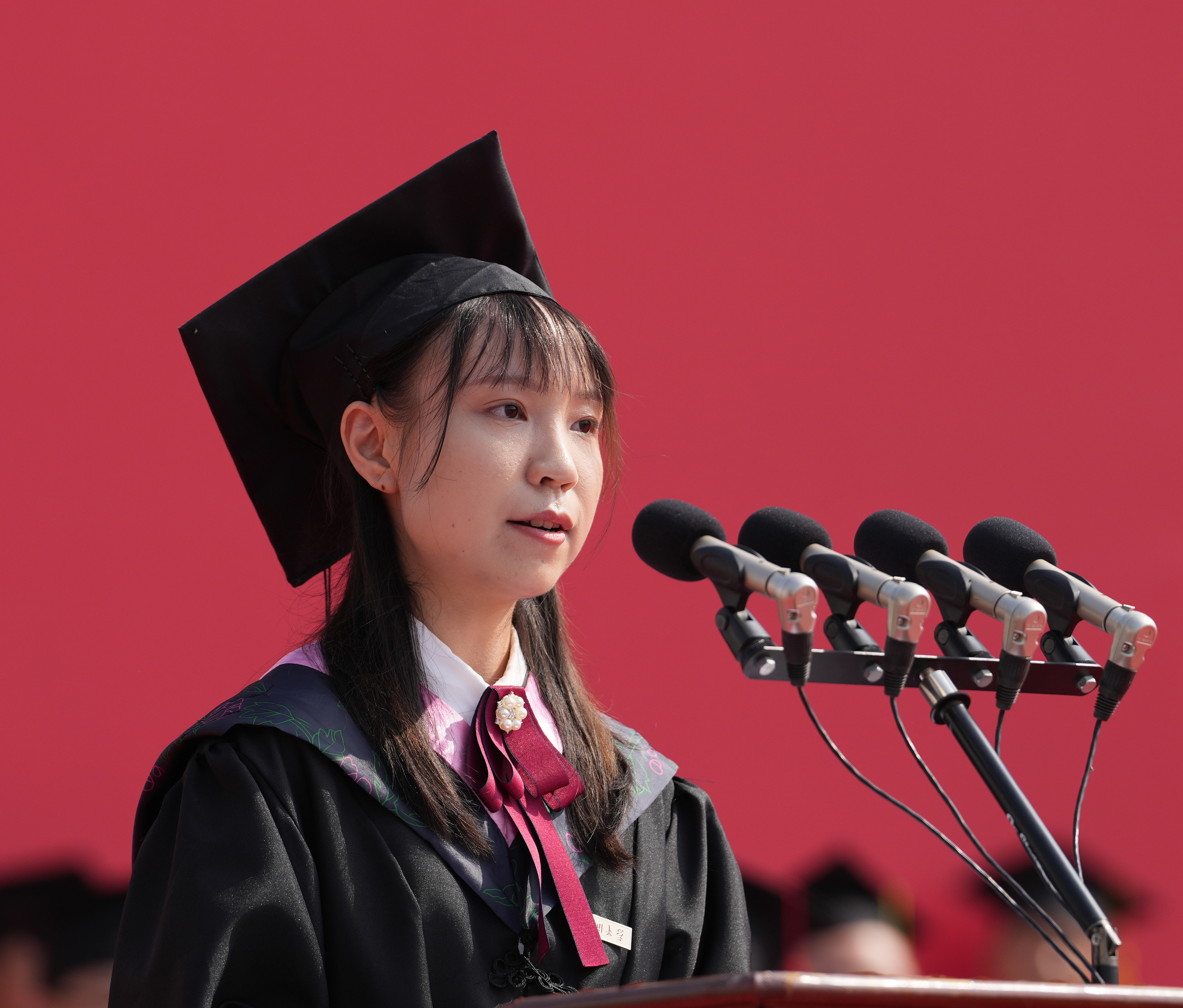 本科生代表、商学院梁湘,研究生代表、物理学院博士生马壮壮,教师代表、药学院教授史进进,校友代表张季超分别发言。