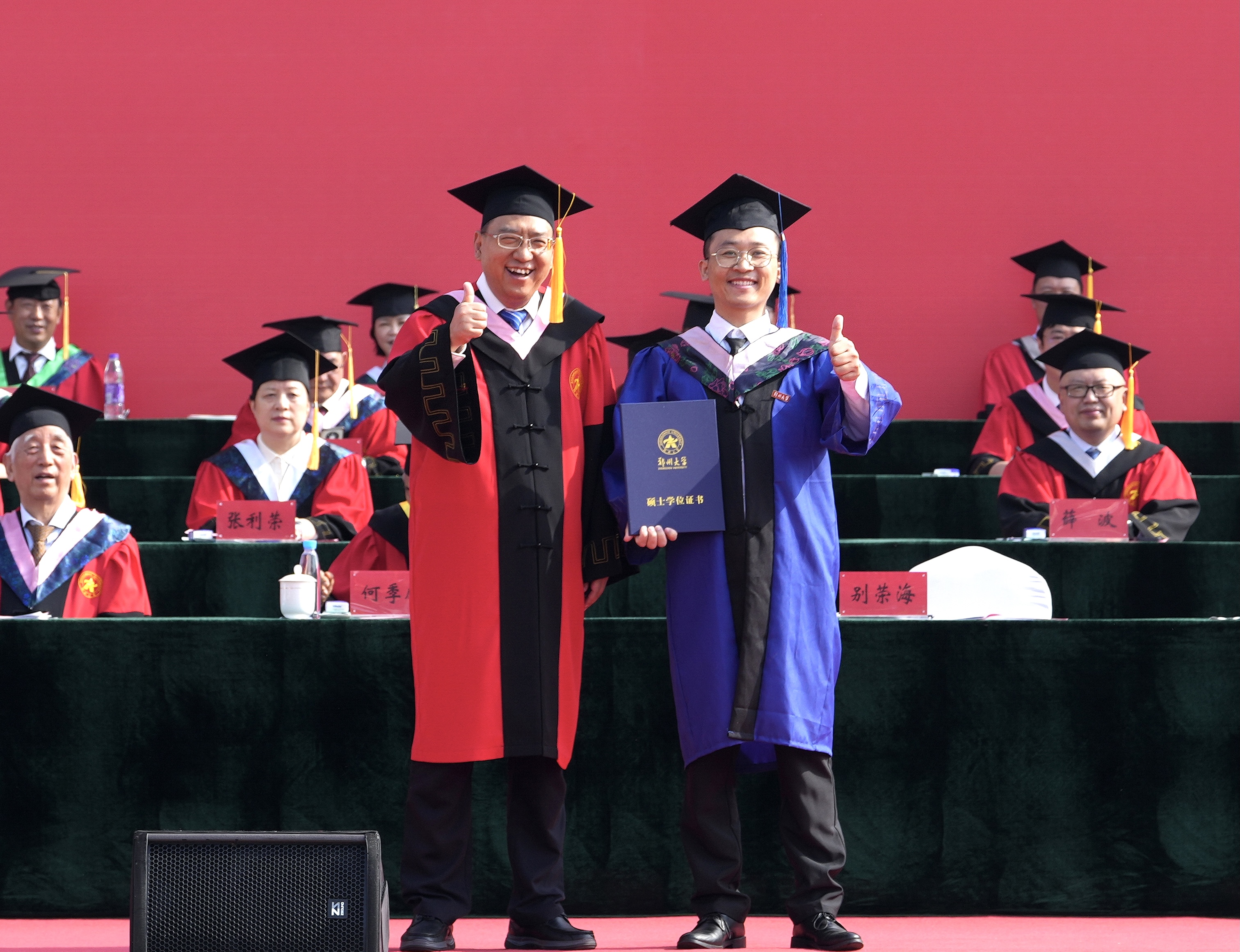 副校长张倩红宣读校学位评定委员会学位授予决定,并主持授位仪式。校学位评定委员会主任、中国科学院院士、校长李蓬为获得博士学位的学生代表授位,校党委书记别荣海教授为获得硕士学位、学士学位的学生代表授位。