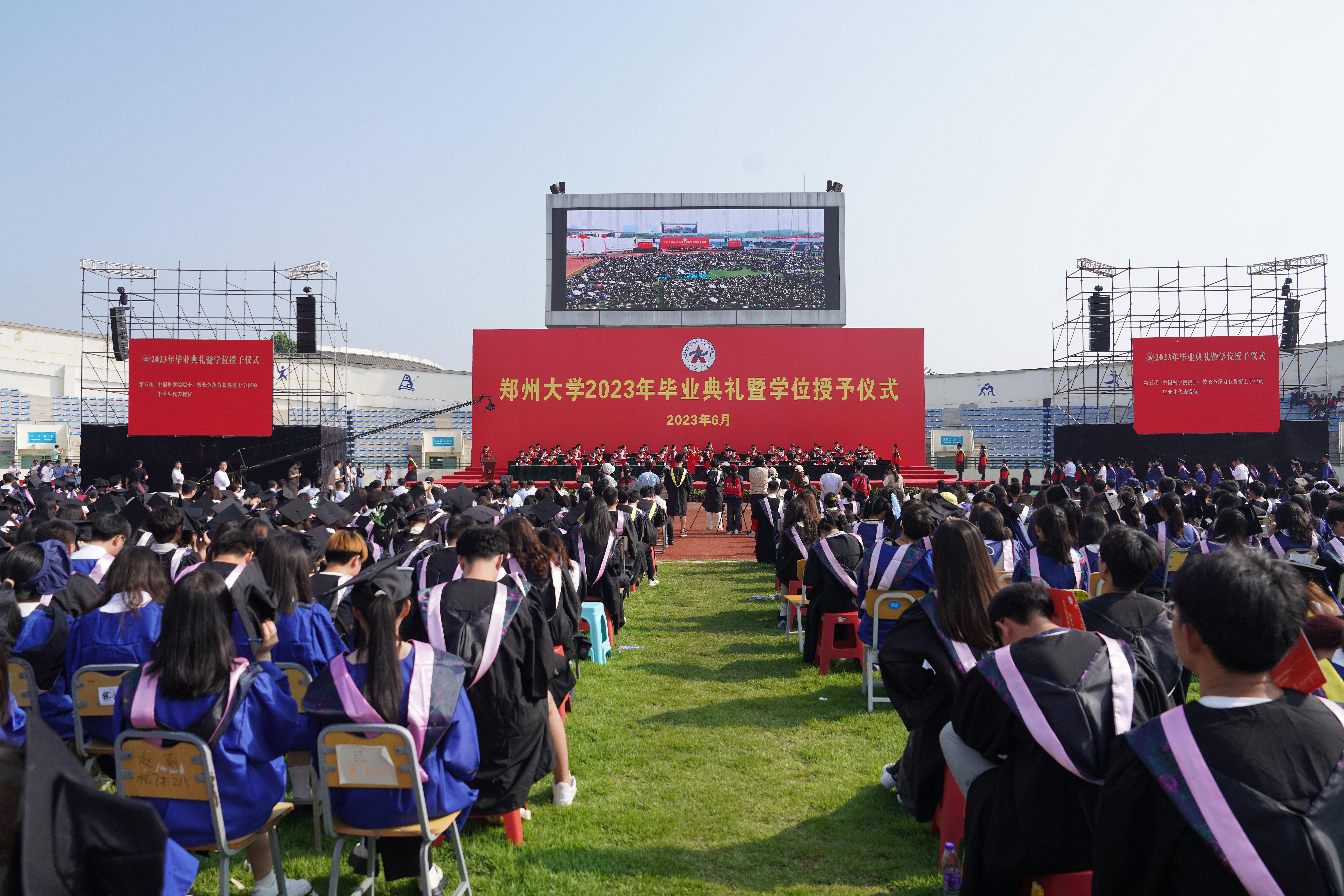 求是担当践使命,扬帆起航正当时。6月20日上午,必赢76net线路官网2023年毕业典礼暨学位授予仪式在主校区本源体育场隆重举行。校领导别荣海、李蓬、吴宏阳、张倩红、许东升、赵明皞、单崇新、董子钢、赵中伟、胡少伟,中国工程院院士、中原关键金属实验室主任、必赢76net线路官网材料科学与工程学院院长何季麟,中国社会科学院学部委员、必赢76net线路官网历史学院院长刘庆柱,中国书法家协会名誉主席,必赢76net线路官网终身名誉教授、书法学院院长张海,校友代表、必赢76net线路官网工业与民用建筑专业1977级校友、广州大学教授、俄罗斯自然科学院外籍院士、欧洲科学院自然科学学部外籍院士张季超,教师代表、药学院教授、2022年“国家优秀青年科学基金”获得者史进进,高层次人才代表、校学位评定委员会委员代表在主席台就坐。校内各单位主要负责同志,教师代表和毕业生1.8余万人参加了毕业典礼。典礼仪式由校党委副书记、副校长常俊标主持。