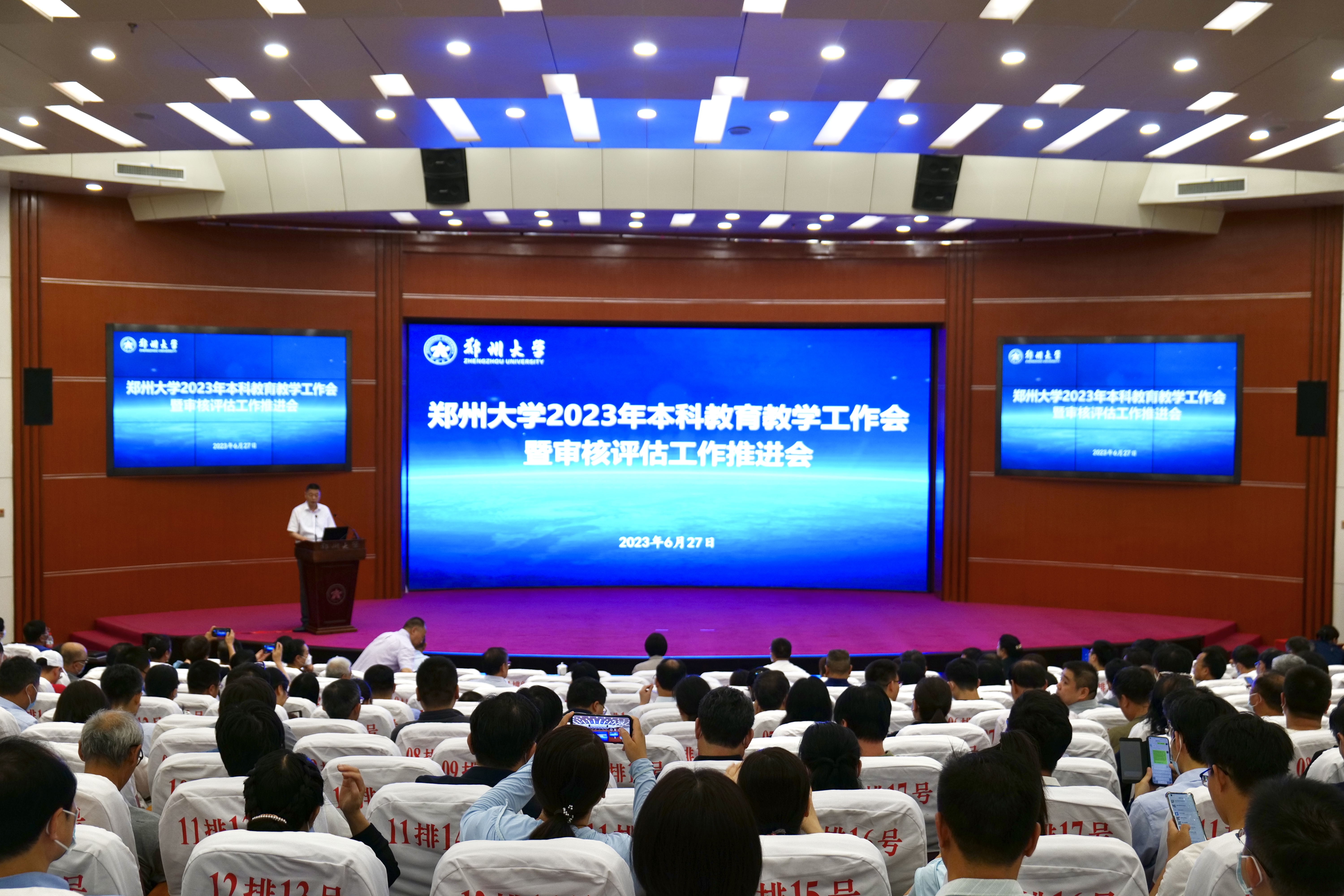 6月27日,必赢76net线路官网在主校区召开2023年本科教育教学工作会暨审核评估工作推进会,校领导别荣海、李蓬、常俊标、吴宏阳、张倩红、许东升、赵明皞、胡少伟出席,相关机关部(处)、直属单位主要负责同志,各院(系)书记、院长、教学副院长、专业负责人、校教学指导委员会委员、教学督导组成员、教师代表共计400余人参加会议。