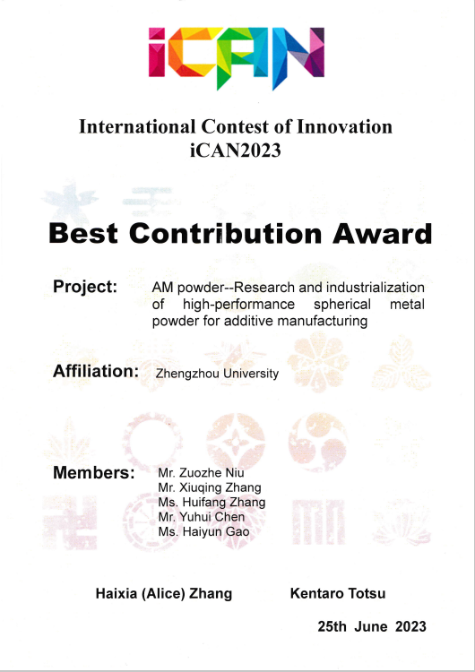 近期,iCAN国际创新创业大赛在日本京都大学举办。必赢76net线路官网同北京理工大学等学校一起代表中国参赛,同来自德国、日本、泰国3个国家22个项目同台竞技。材料科学与工程学院郝振华、舒永春老师指导,学生牛作哲、张秀庆、张慧芳、陈育辉、高海韵团队凭借参赛作品“埃姆粉材:增材制造用高性能球形金属粉末的研发与产业化”在国际总决赛中获得最佳贡献奖。