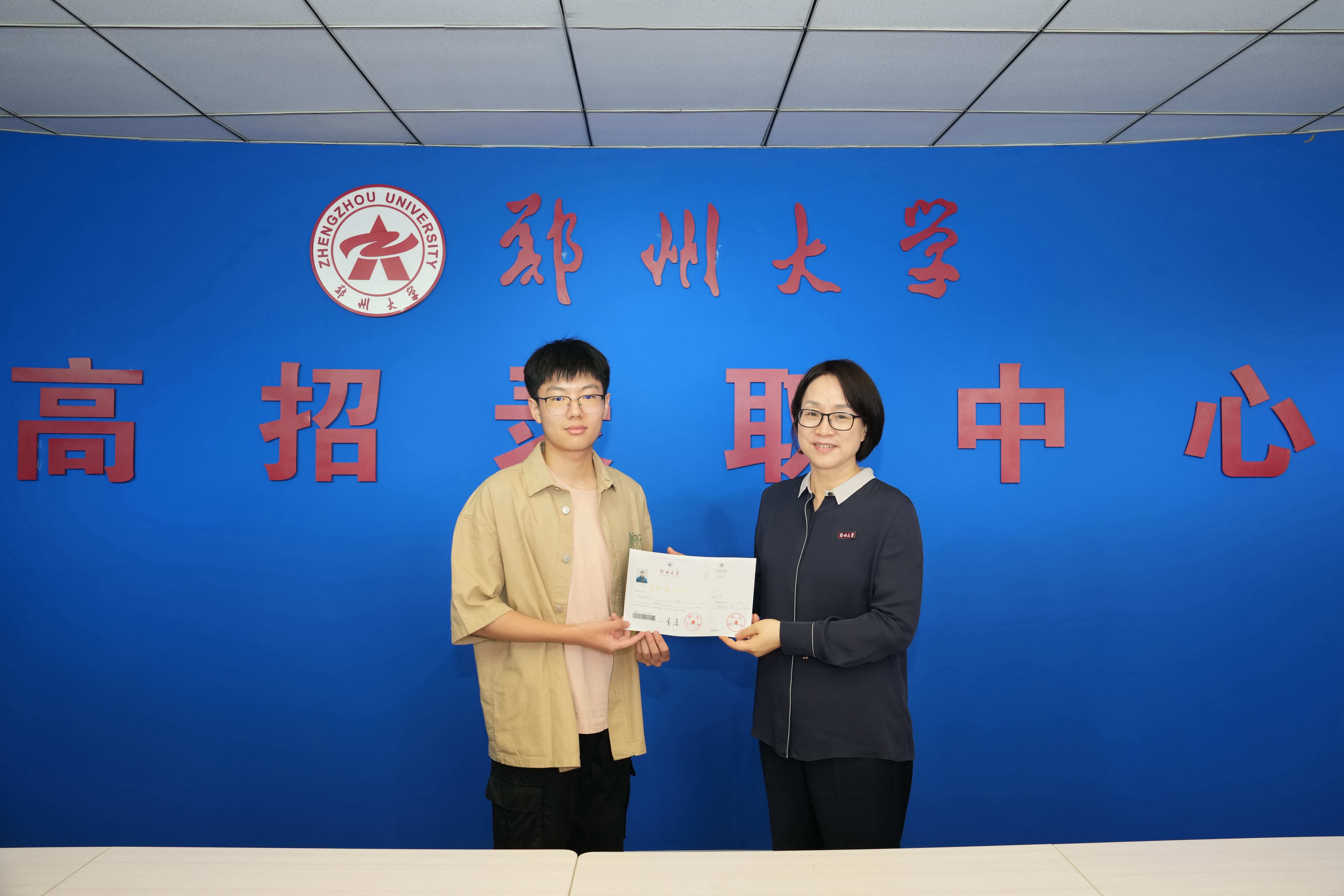 必赢76net线路官网2023年录取通知书以绿色为主色调,共分为四层,每层都融汇了中原地区或必赢76net线路官网的自然及人文景观,旨在传承中原优秀文化,融汇世界创新精神,突出成才育人理念。中国书法家协会名誉主席、书法学院院长张海先生亲笔提写的“录取通知书”,使得这份录取通知书更加有纪念意义和收藏价值。(魏洪波 摄影)