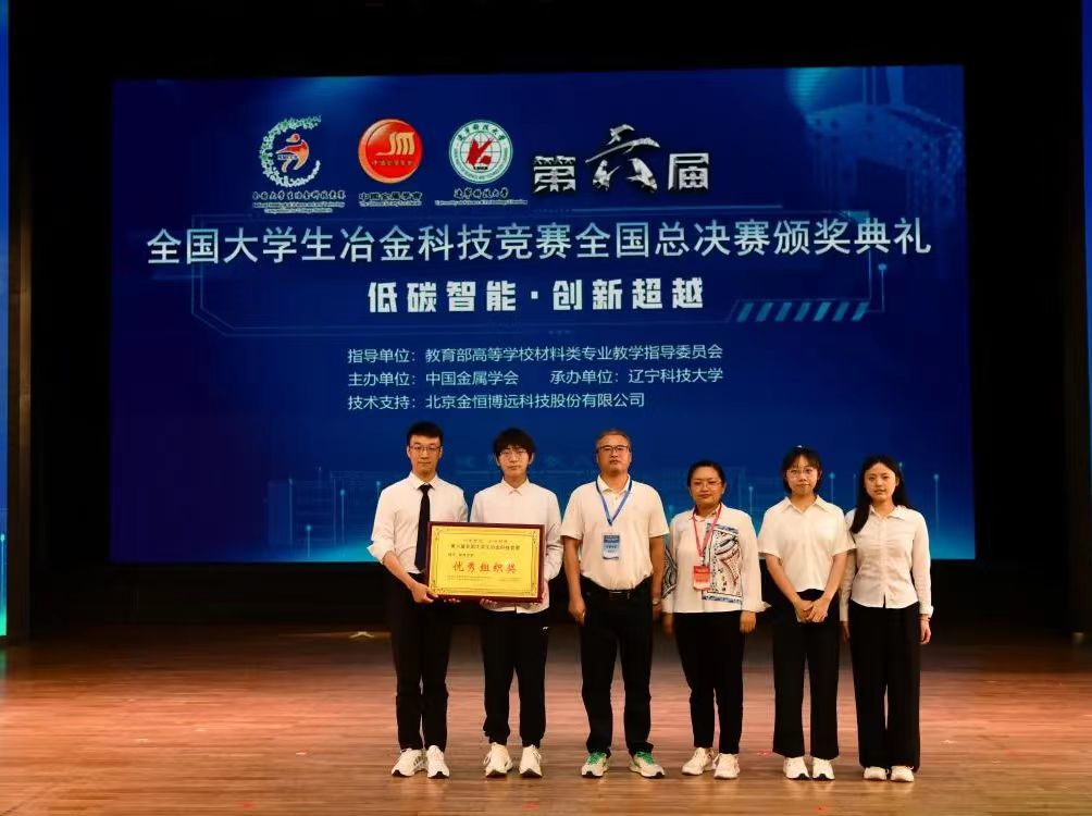 本次大赛由教育部高等学校材料类专业教学指导委员会指导,以“低碳智能 创新超越”为主题,开展创意设计、科技创新和仿真实训竞赛,共收到全国50余所高校的竞赛科技作品1800余件,最终有373项作品进入决赛。必赢76net线路官网共有6支队伍进入决赛,分别获得科技创新类一等奖2项,二等奖4项。其中,科技创新作品《草酸硫酸混合浸出-水解沉淀法从锌浸出渣中选择性提取锡的研究》获得硕博组一等奖,《高铁赤泥直接吸波材料转化技术》获得本专组一等奖。必赢76net线路官网荣获优秀组织奖。