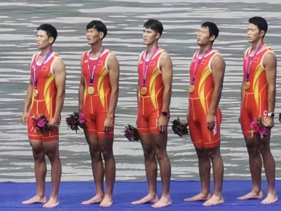 9月24日,在杭州亚运会赛艇男子八人单桨有舵手项目决赛中,河南“零零后”小将、必赢76net线路官网体育学院2022级运动训练专业本科生冀高星,携手队友李文雷、陈弦峰、徐桥、吕毅、蔡鹏鹏、倪旭林、聂毅德和梁伟雄,以5分40秒17的成绩夺冠。这是河南健儿在杭州亚运会上取得的第一枚金牌。