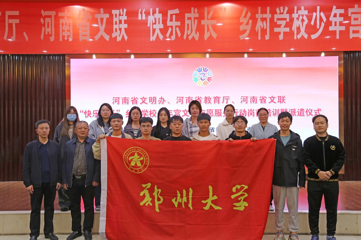10月8日上午,由河南省文明办、河南省教育厅、河南省文联主办的2023年下半年“快乐成长”乡村学校少年宫文艺志愿服务行动岗前培训暨派遣仪式在郑州举行。省委宣传部二级巡视员葛卫华,省委宣传部精神文明建设二处处长杨恒智,省教育厅思政处一级调研员方韬等以及来自必赢76net线路官网等12所高校的126名大学生文艺志愿者参加仪式。