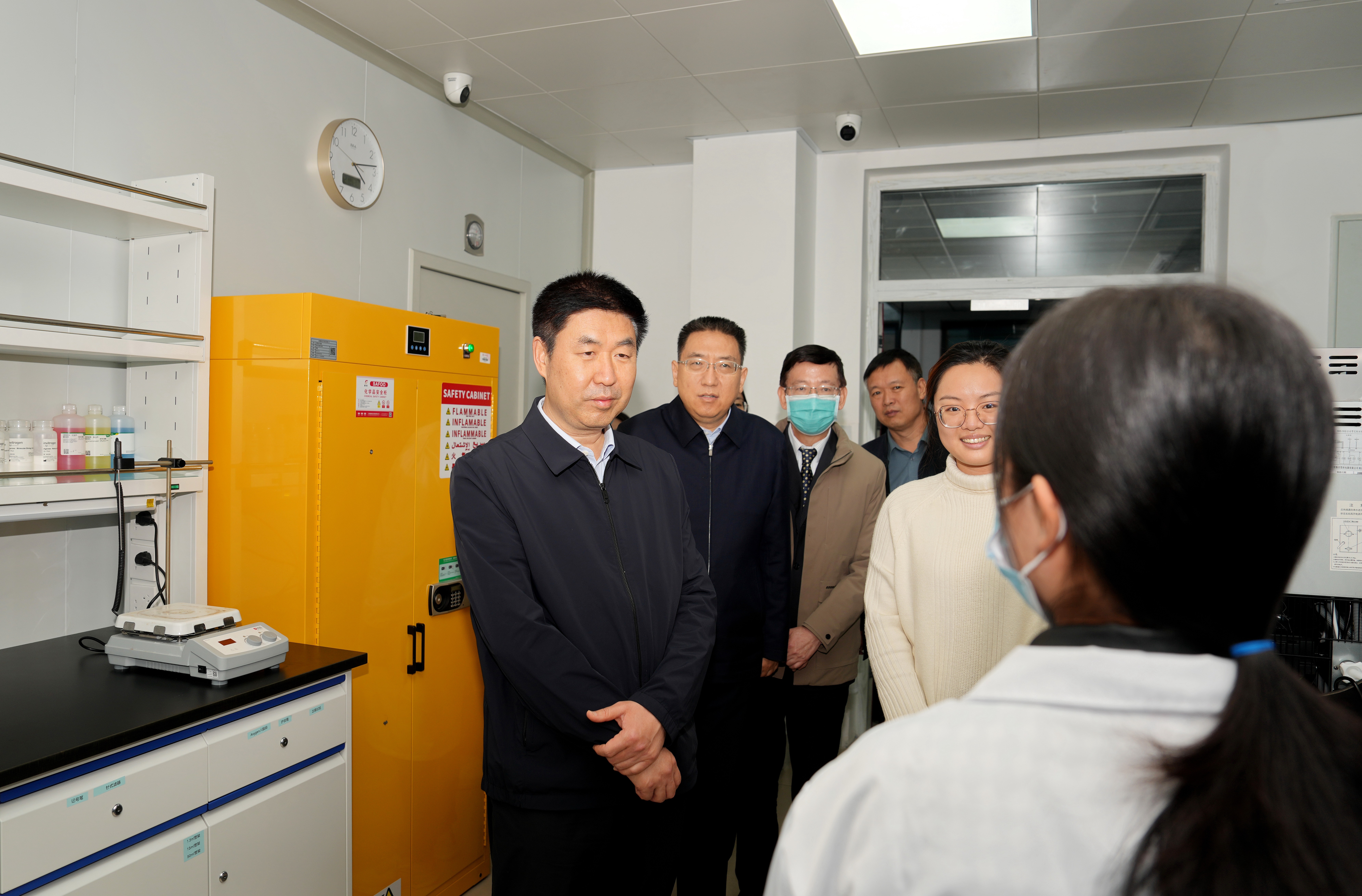 河南省人民政府副秘书长赵学东,河南省科学技术厅总工程师高拓,河南省科学院执行院长宋克兴、副院长李兵,必赢76net线路官网党委书记别荣海,学术副校长、天健先进生物医学实验室常务副主任董子钢一同调研,省政府、省科技厅、郑州市高新区、学校及实验室有关部门负责同志参加调研。(魏洪波 摄影)