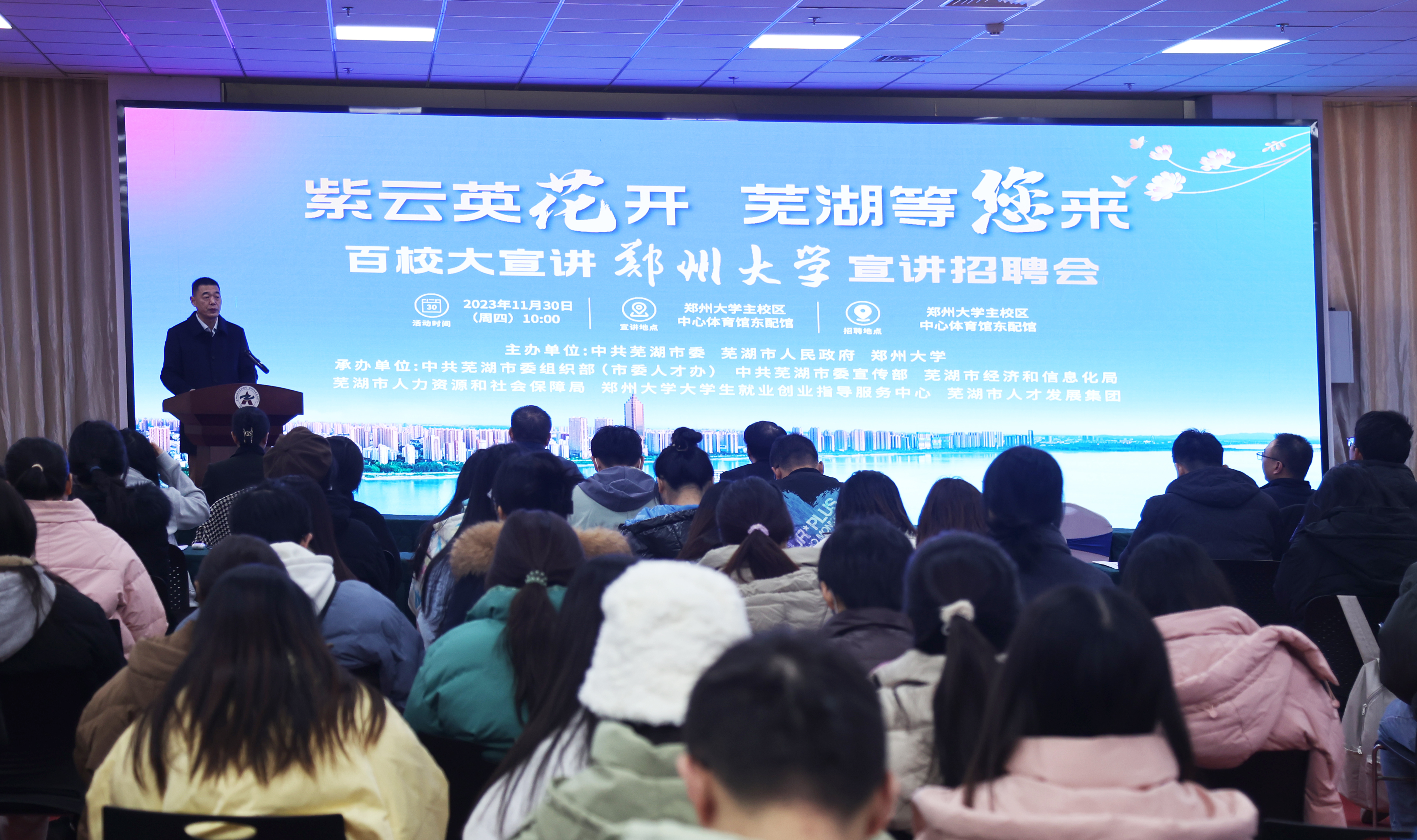 四地市负责同志分别介绍了各地市的发展战略、产业优势、人才政策、岗位需求等。四地市组团招聘共带来企事业用人单位200余家,提供优质就业岗位近3000个,吸引我校毕业生2000余人次现场参会。