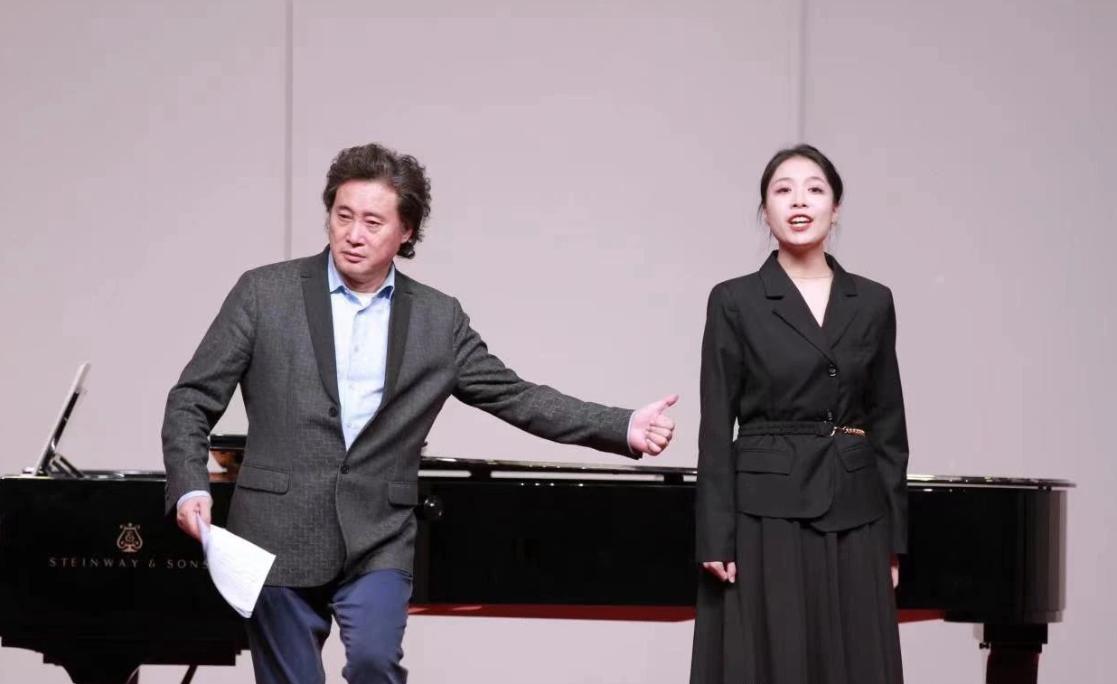 戴玉强凭借其丰富的艺术实践经验和深厚的学术造诣,从语言到角色,从技巧到音乐,用歌剧演员独有的表演能力,风趣幽默的细致讲解,为大家带来了一场别开生面的声乐公开课。课堂氛围轻松愉快,他用通俗易懂的语言,将声音位置的调整、音乐语言的流动、气息力量的支撑、人物角色的塑造等一系列知识点娓娓道来,让大家近距离地感受到艺术家敏锐的洞察力和歌剧演员惊人的表现力,令同学们受益匪浅,收获颇深。
