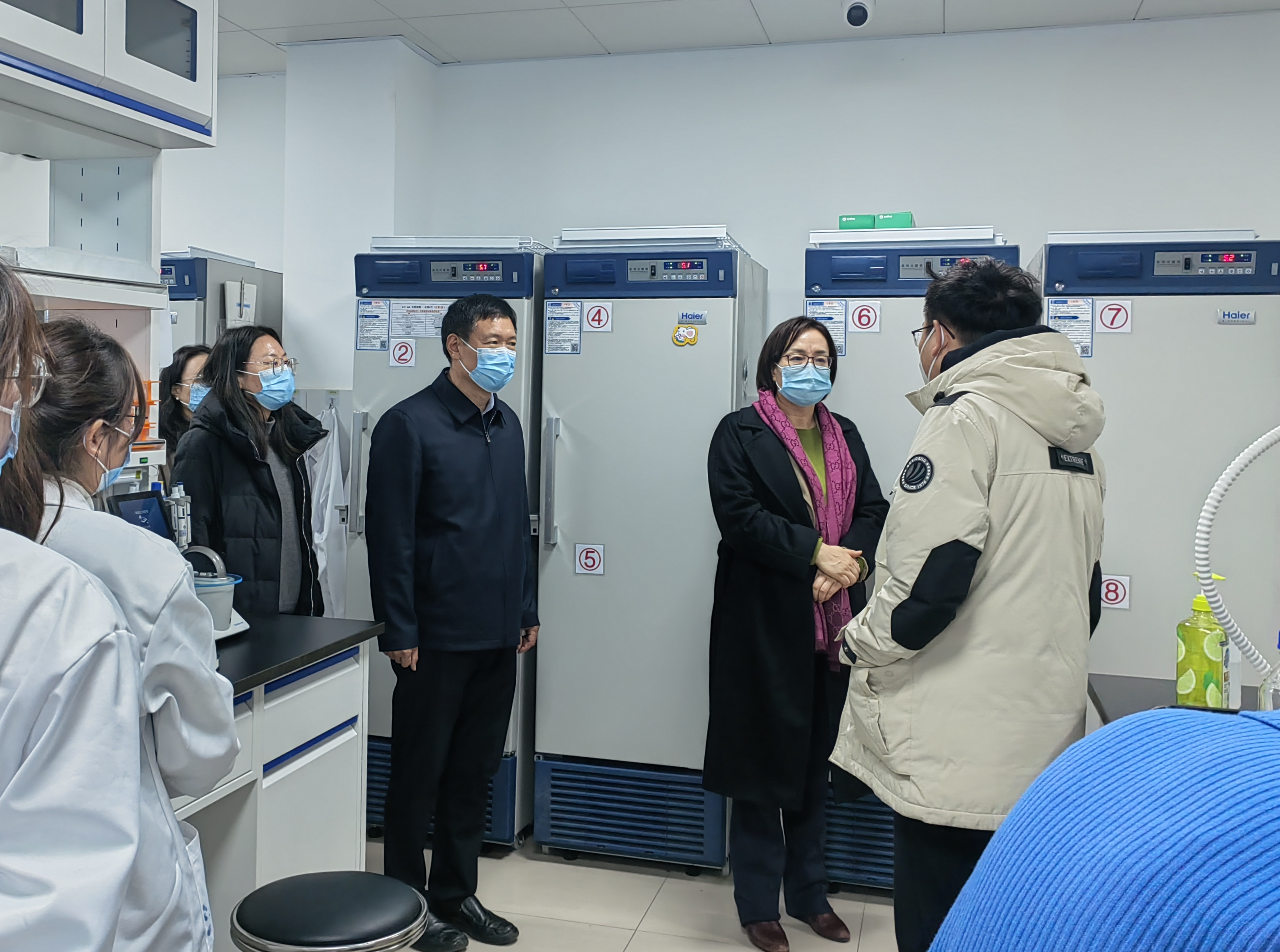 李蓬深入学院实验室,详细询问了实验进展和大家的工作生活情况,并与师生们亲切交流。针对近期甲流等传染病高发的实际,她嘱咐大家劳逸结合、加强防范,保证实验室正常运转。在天健先进生物医学实验室,她以自己的科研经历,勉励广大师生要保持对科学的热爱与执着,面对困难时要有百折不挠的毅力,以坚决战胜困难的勇气和决心积极寻找解决问题的方法;要坚持科学思维,传承科学精神,以求真务实的态度,潜心科研工作,为打造生物医学国家战略科技力量、服务人民生命健康贡献自己的力量。